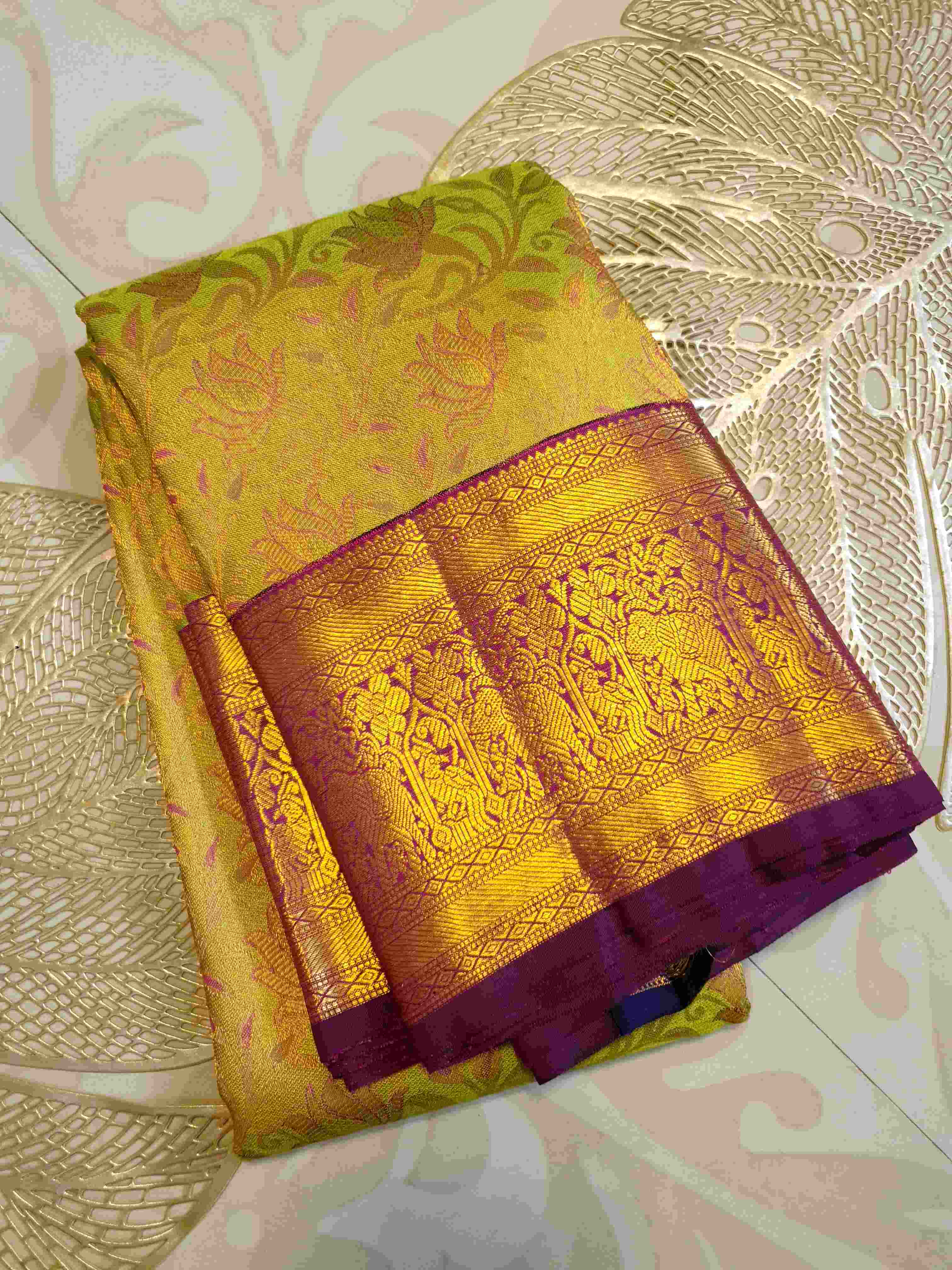 Mustard Kanchipuram Handloom 2G Gold Pattu Silk Saree