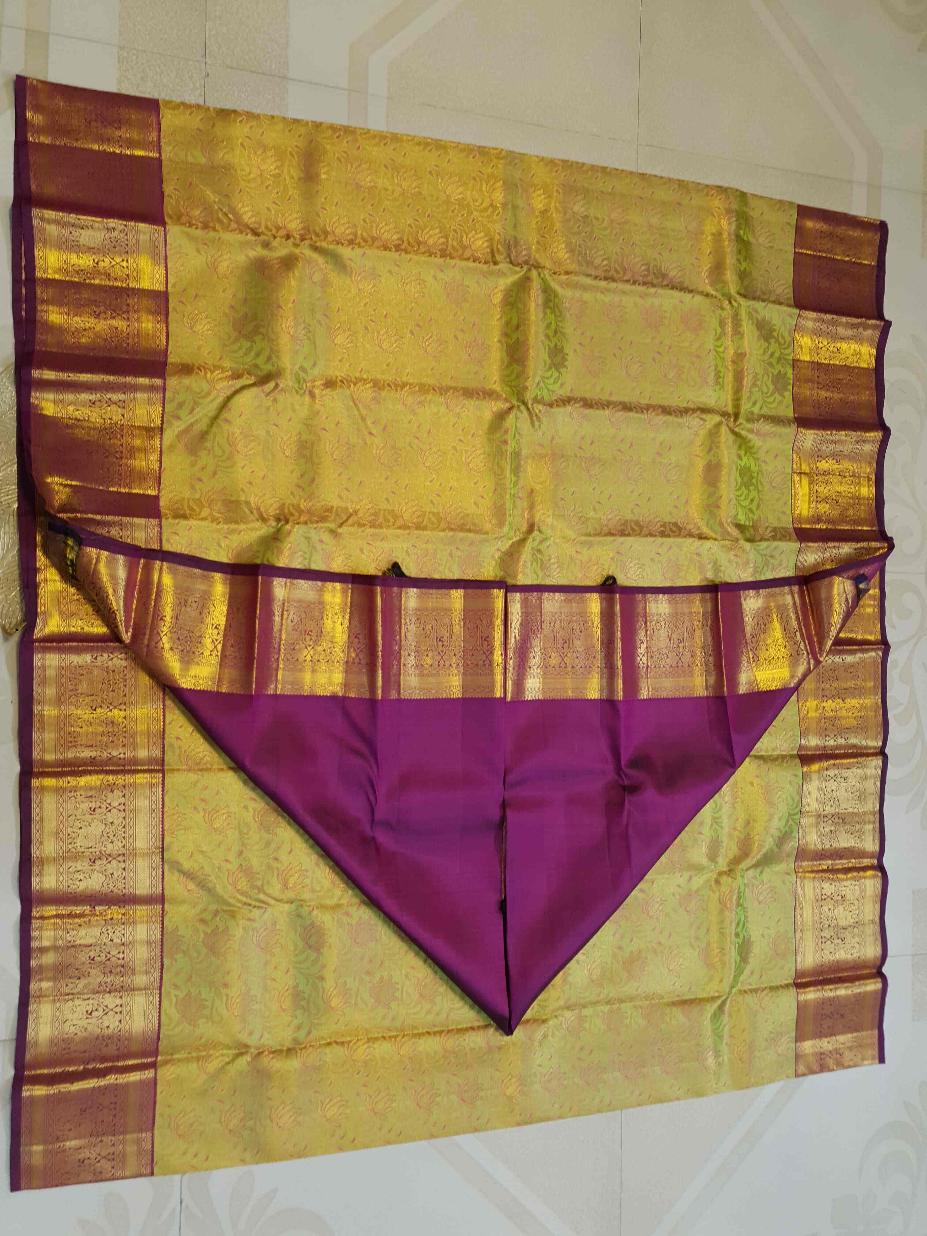 Dual Tone Purple Kanchipuram Handloom 2G Gold Pattu Silk Saree