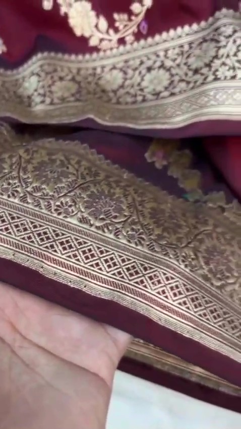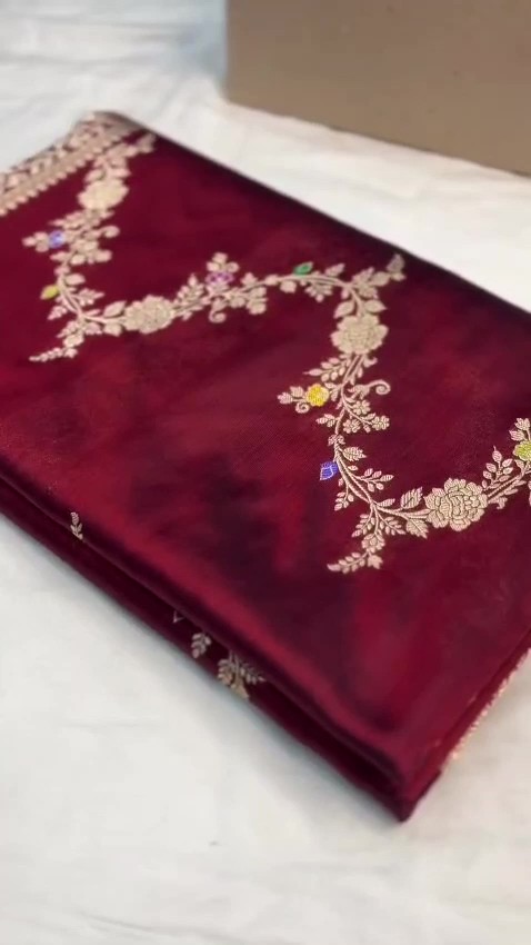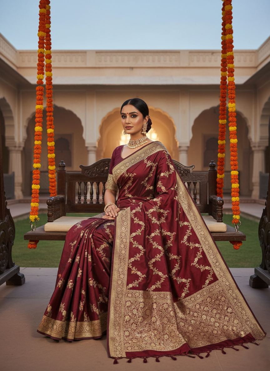 Maroon Banarasi Handloom Katan Silk Meenakari Saree