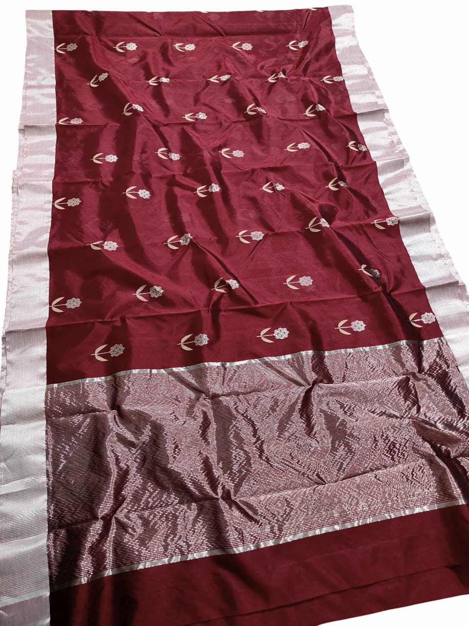 Maroon Chanderi Handloom Pattu Silk Meenakari Saree