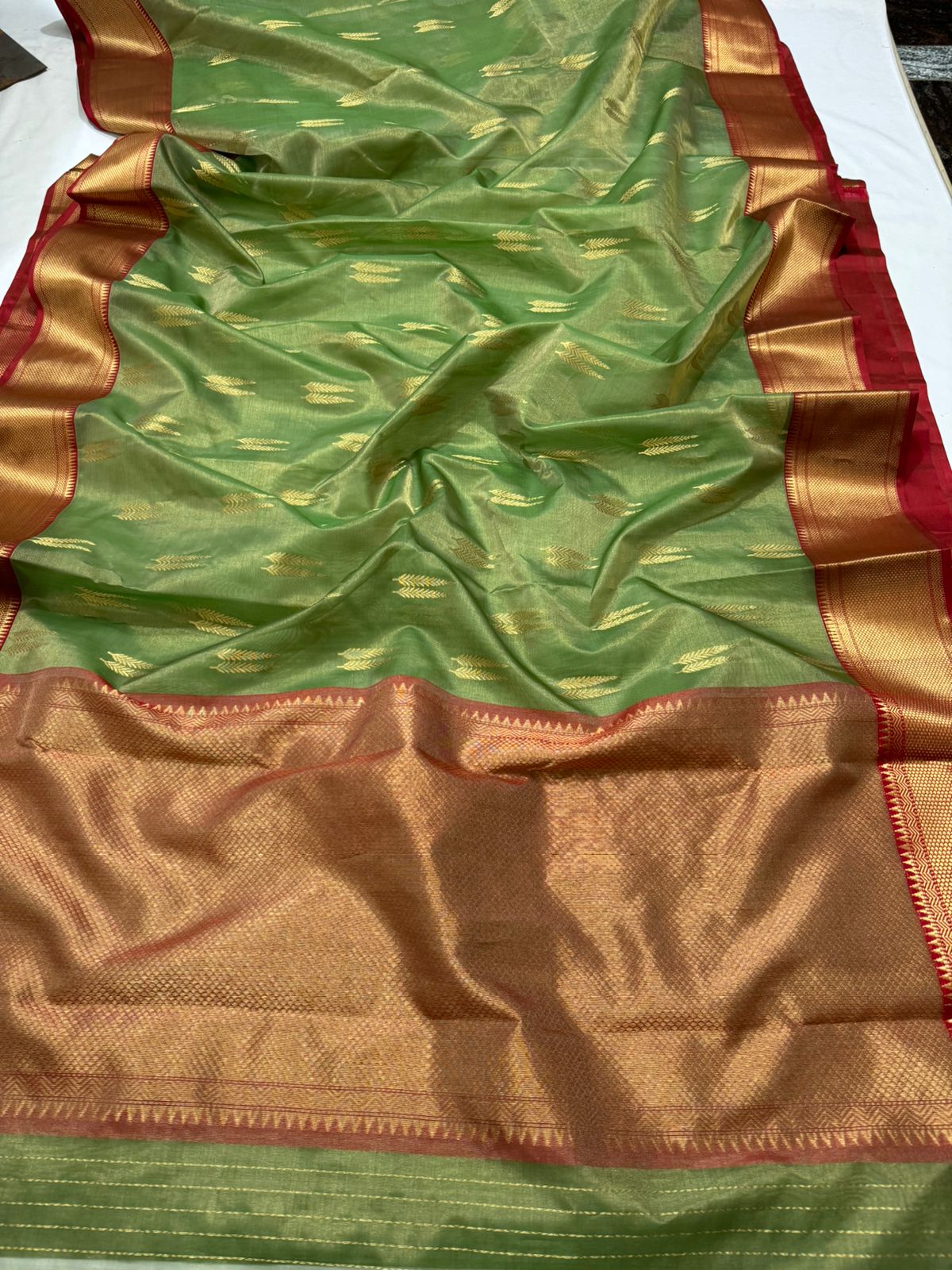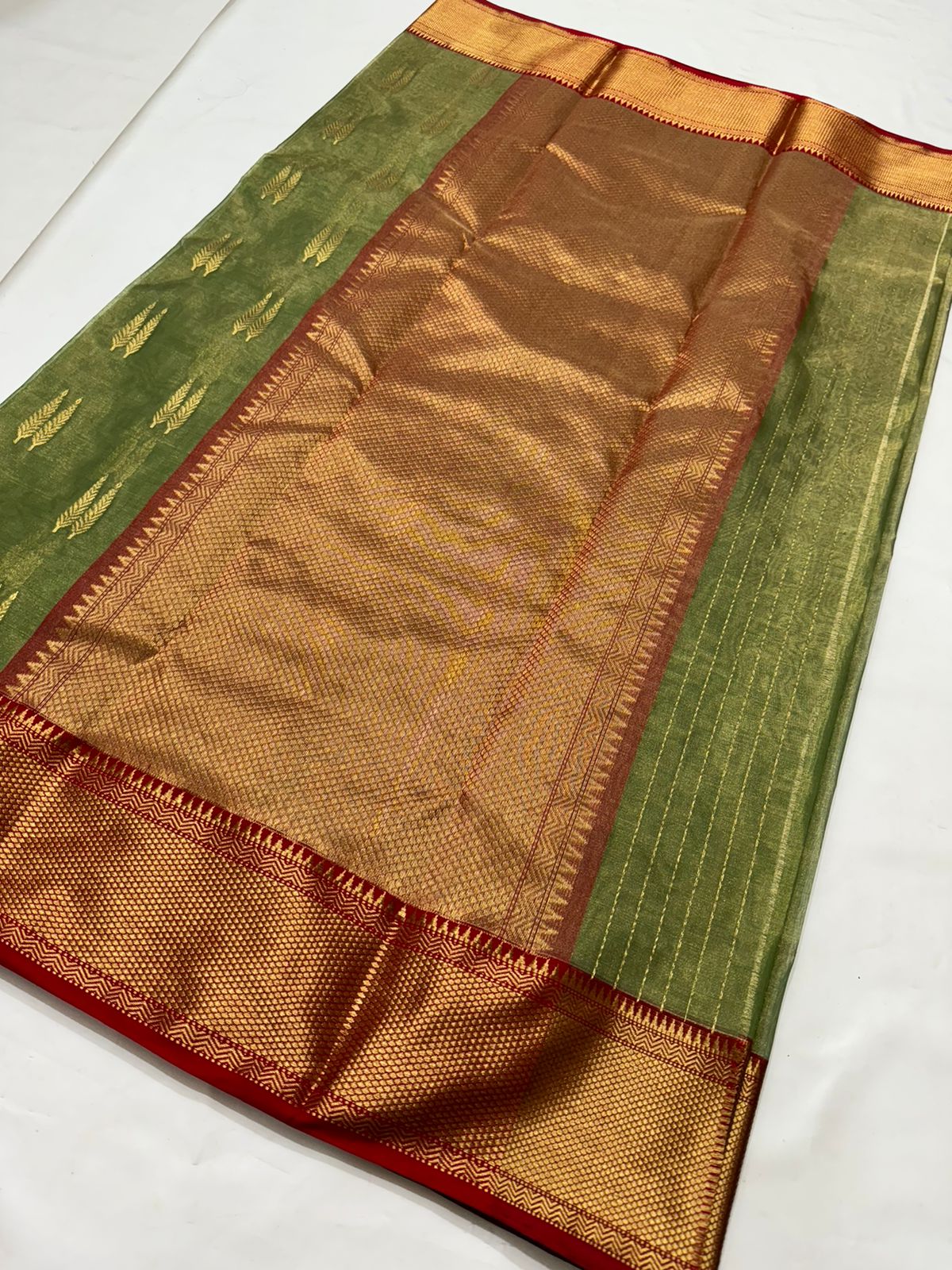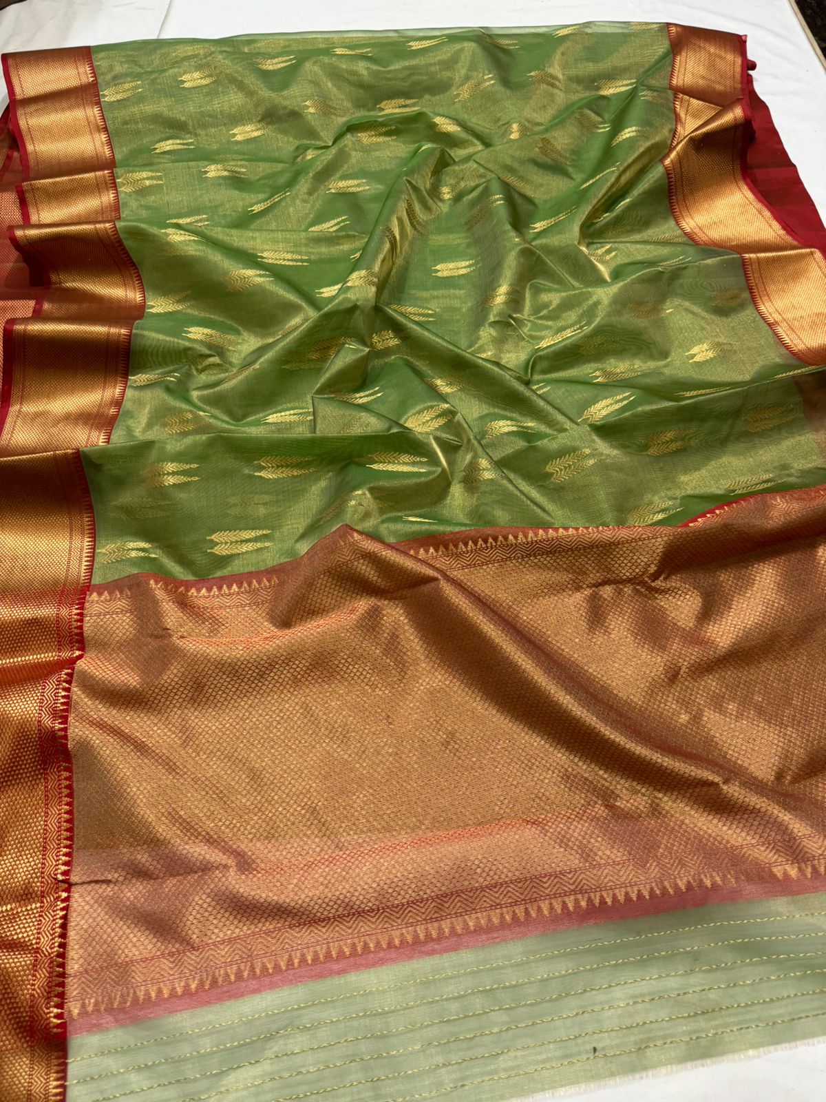 Mehandi Green Chanderi Handloom Katan Tissue Silk Saree