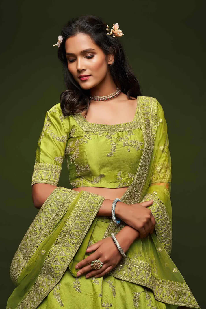 Neon Silk Lehenga with Thread, Zari & Sequins Work