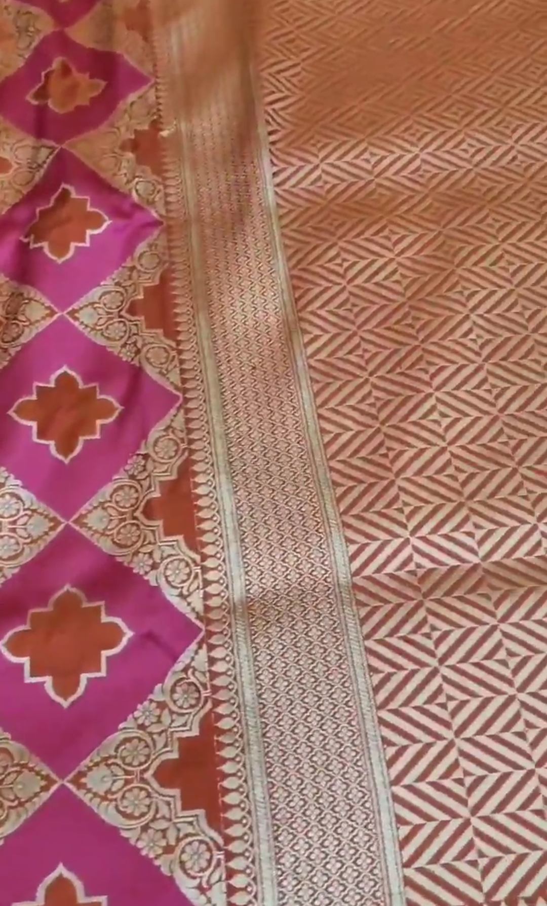 Dual Tone Hot Pink Banarasi Handloom Katan Silk Brocade Saree