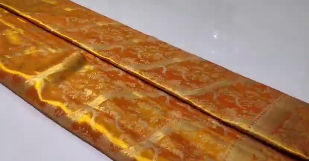 Orange Kanchipuram Handloom Tissue Brocade Silk Meenakari Saree