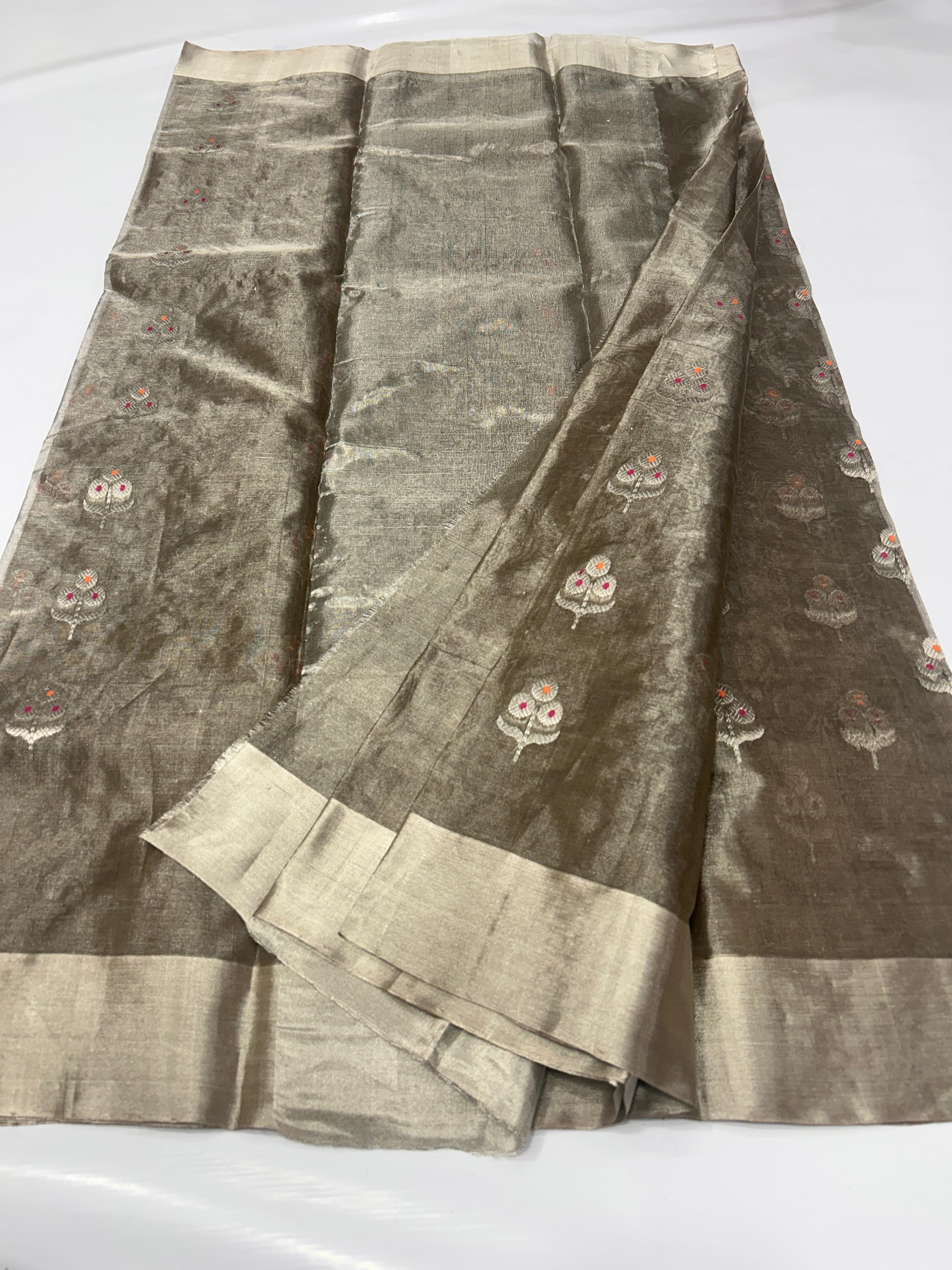Pastel Brown Chanderi Handloom Katan Tissue Silk Meenakari Saree