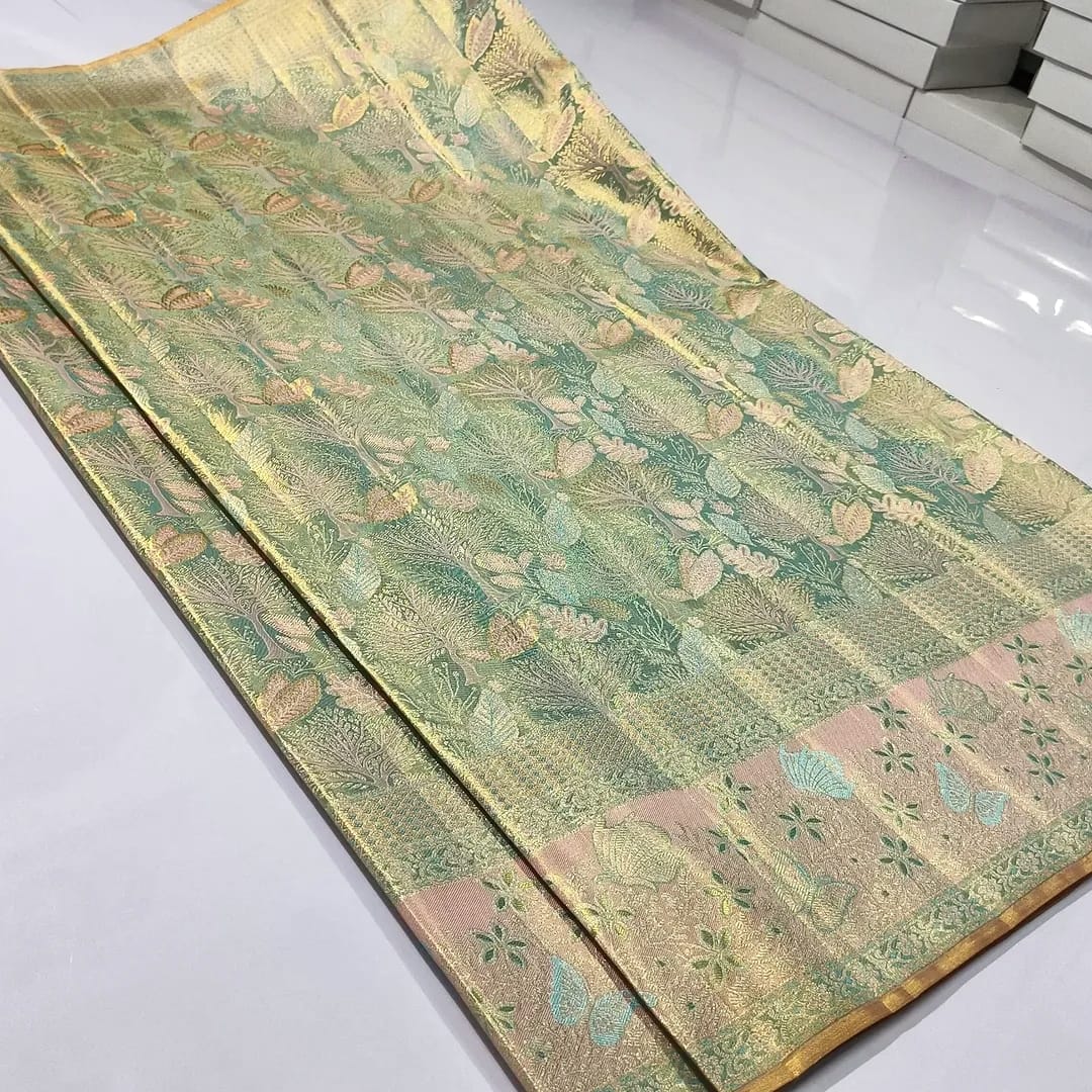 Green Kanchipuram Handloom Tissue Brocade Silk Meenakari Saree