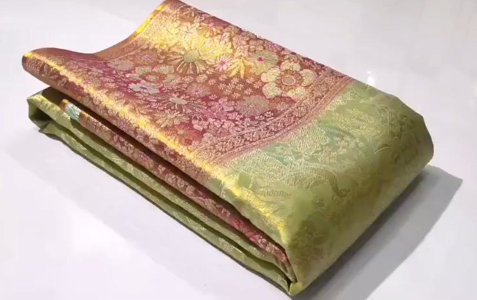 Dual Tone Green Kanchipuram Handloom Tissue Brocade Silk Saree