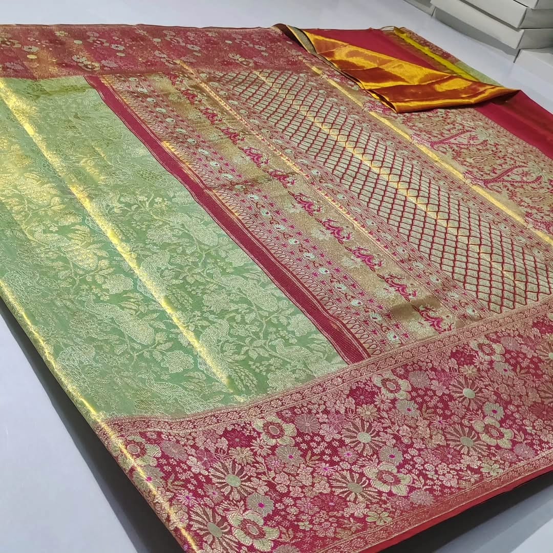 Green Kanchipuram Handloom Tissue Brocade Silk Meenakari Saree