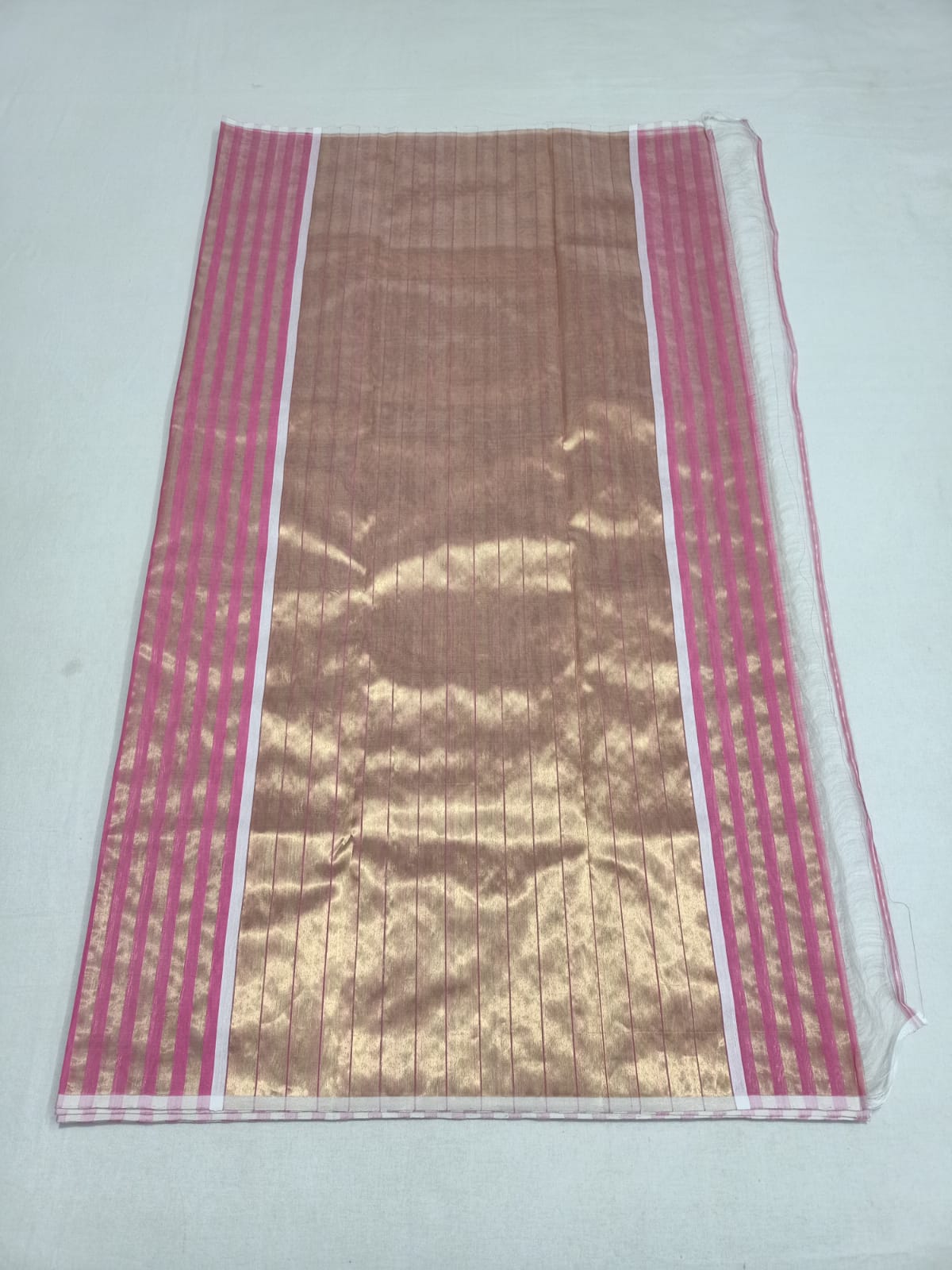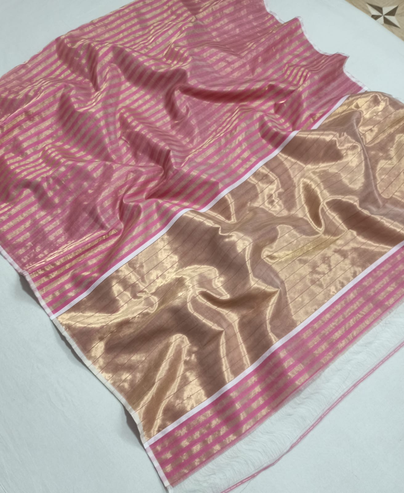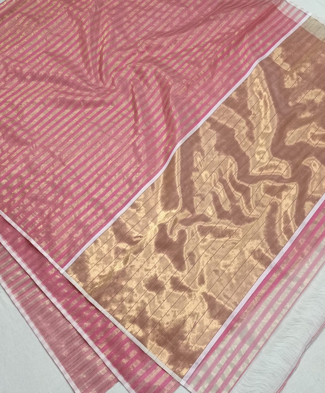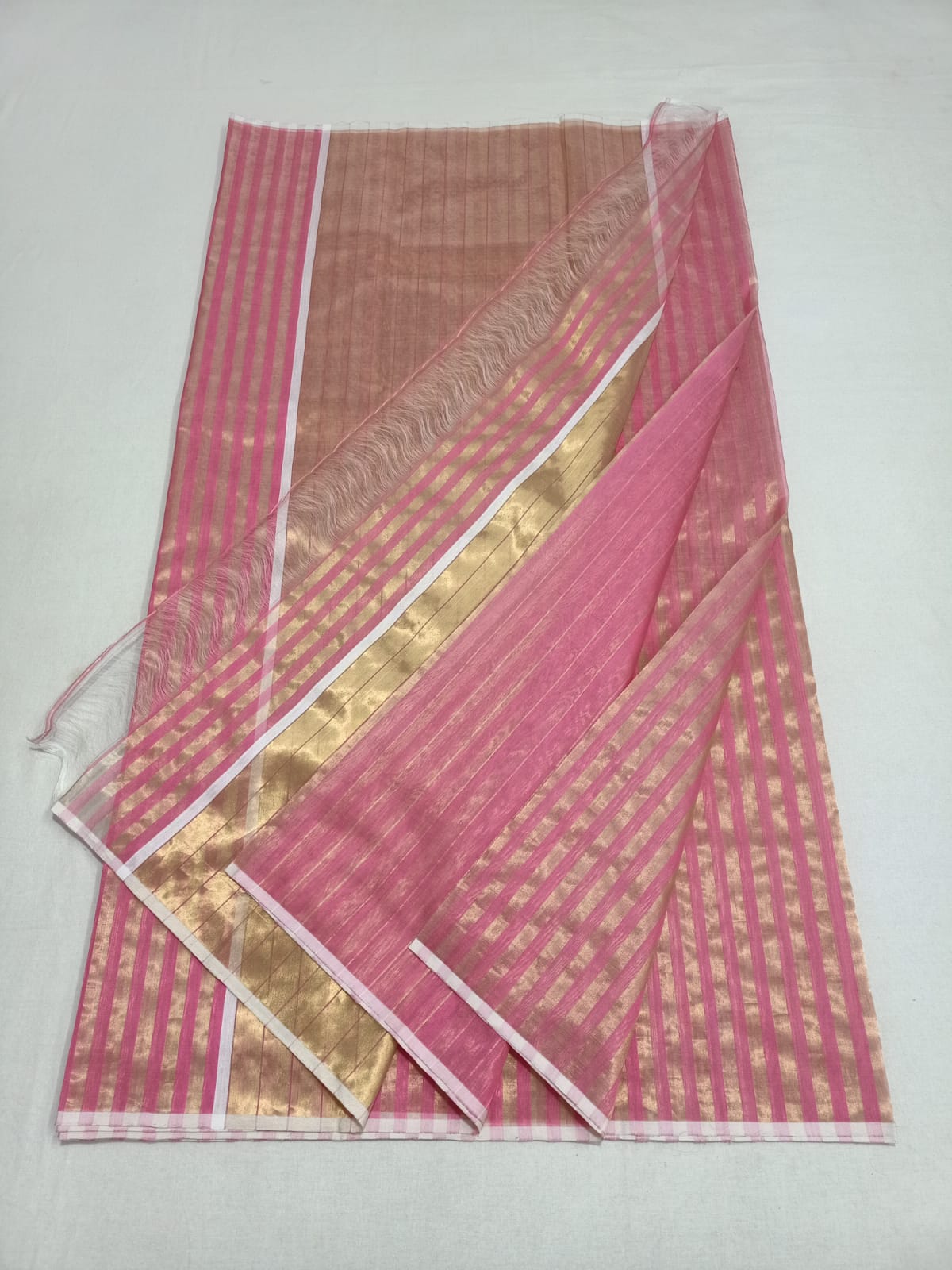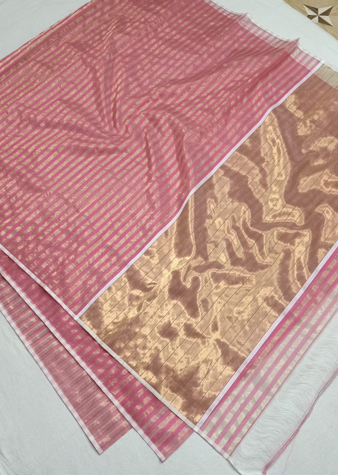 Pastel Pink Chanderi Handloom Cotton Silk Striped Saree