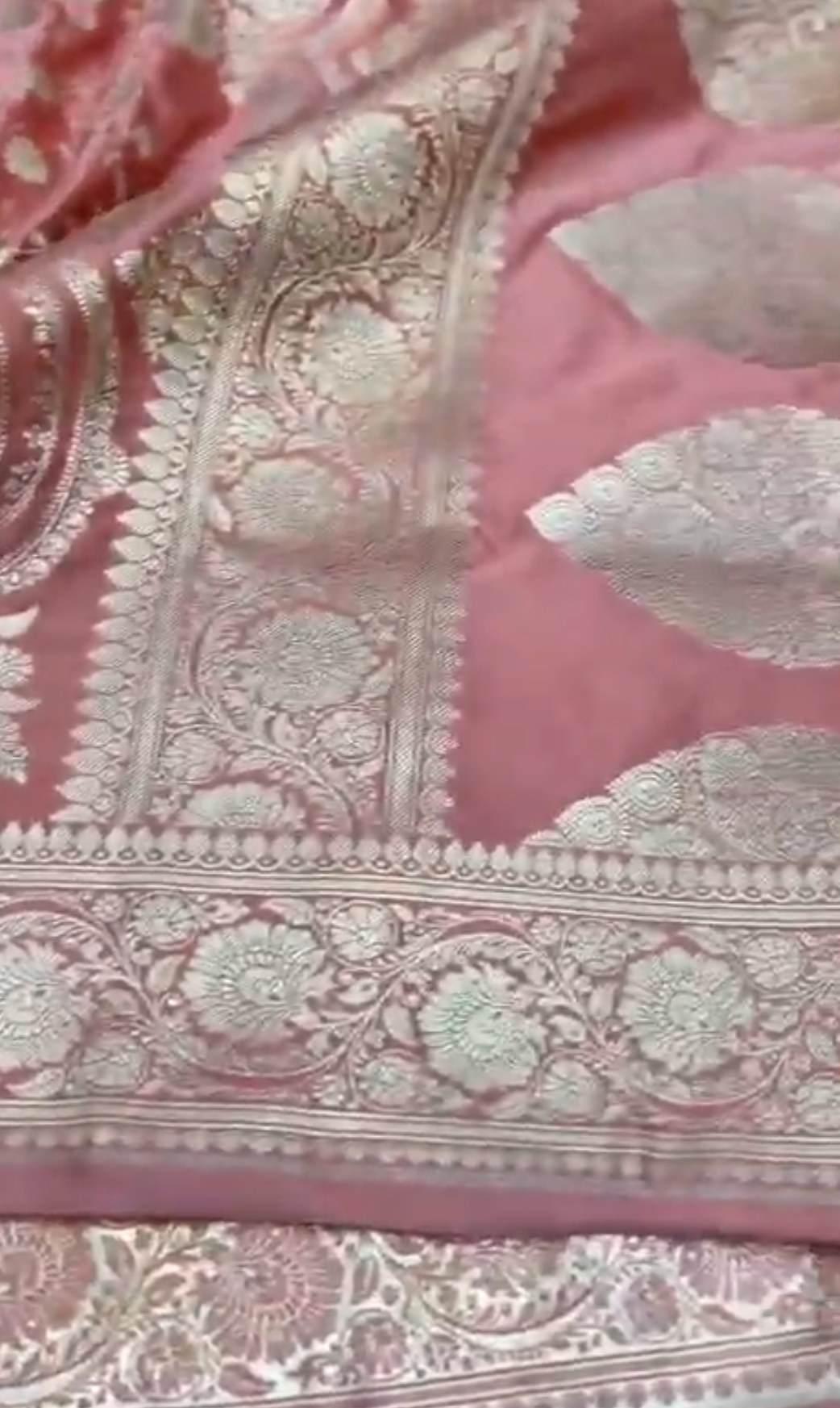 Onion Pink Banarasi Mashru Soft Silk Jangla Saree