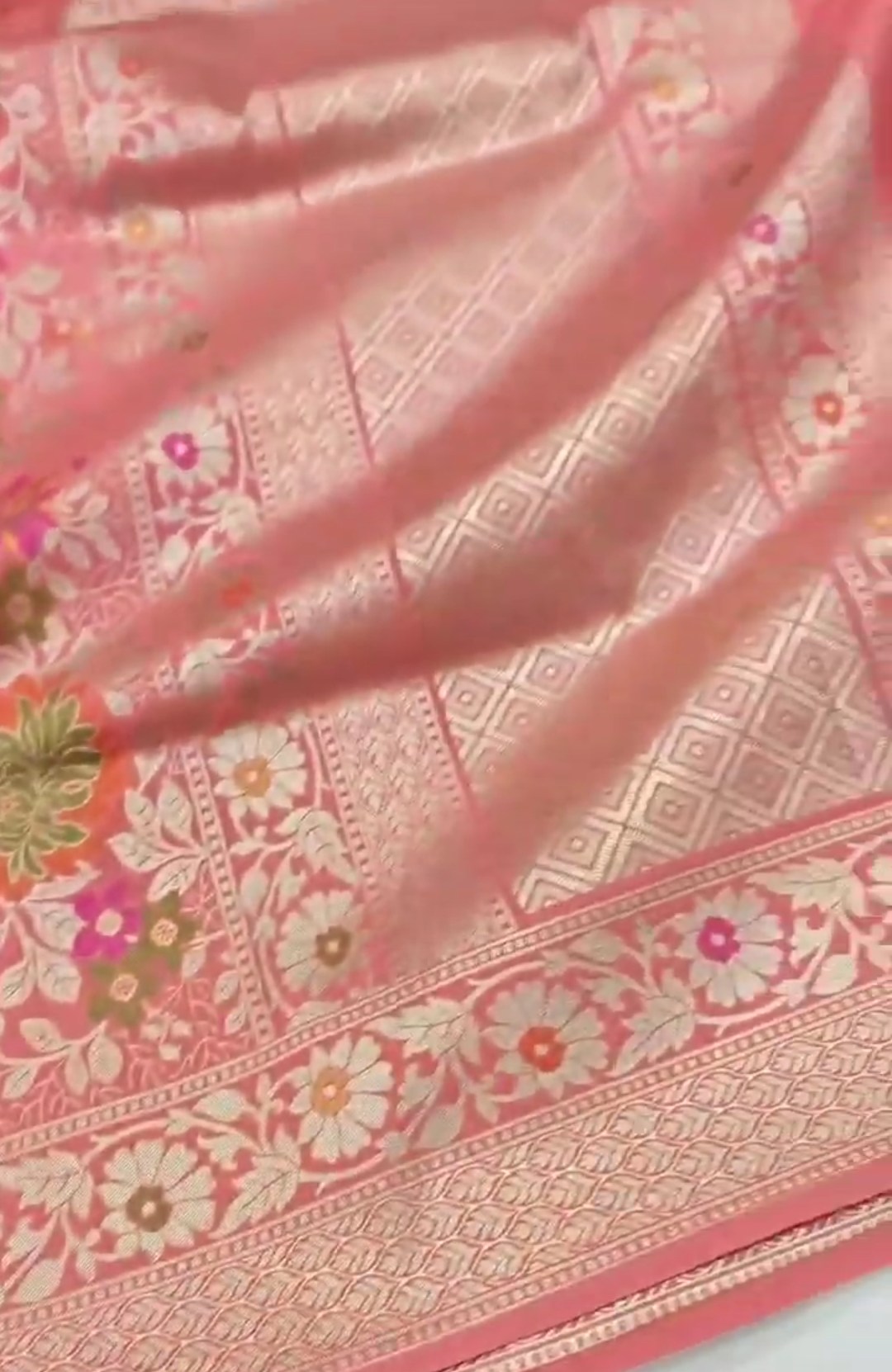Pastel Pink Banarasi Semi Katan Silk Tilfi Meenakari Saree