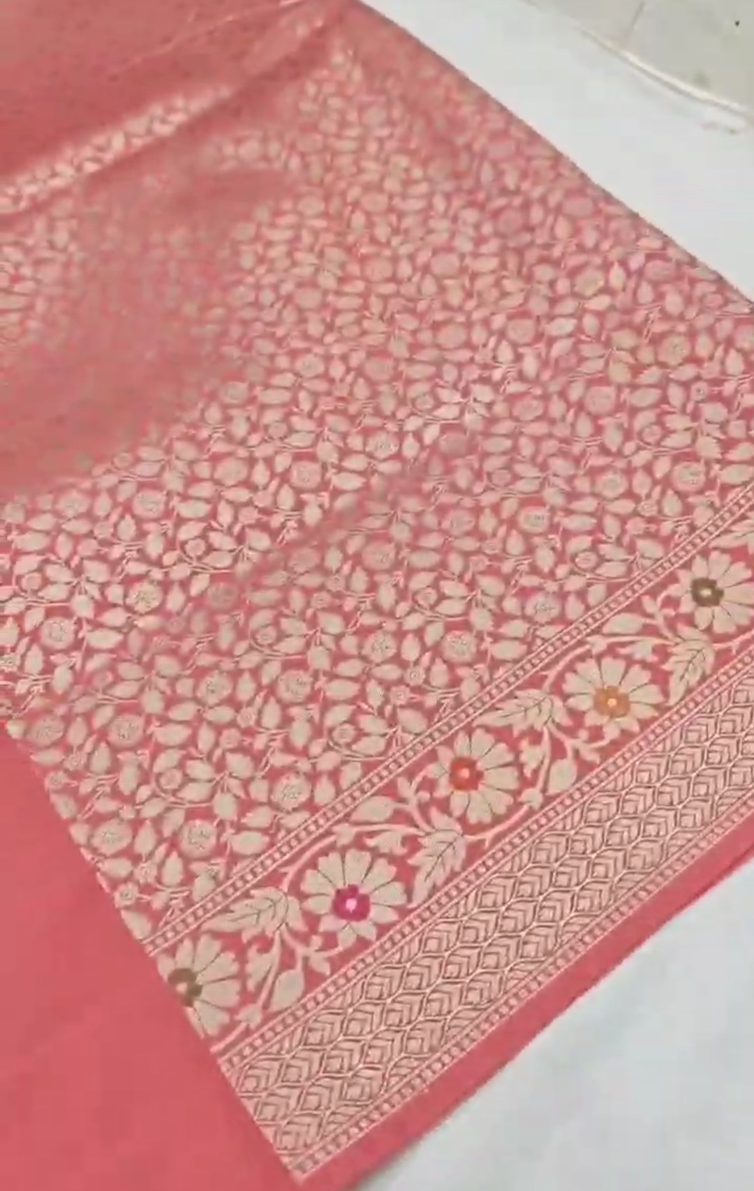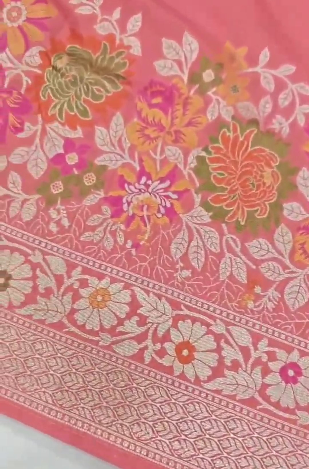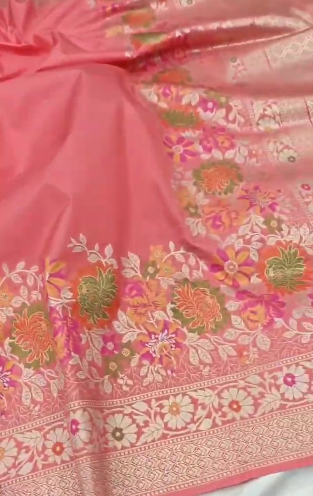Peach Banarasi Semi Katan Silk Tilfi Meenakari Saree
