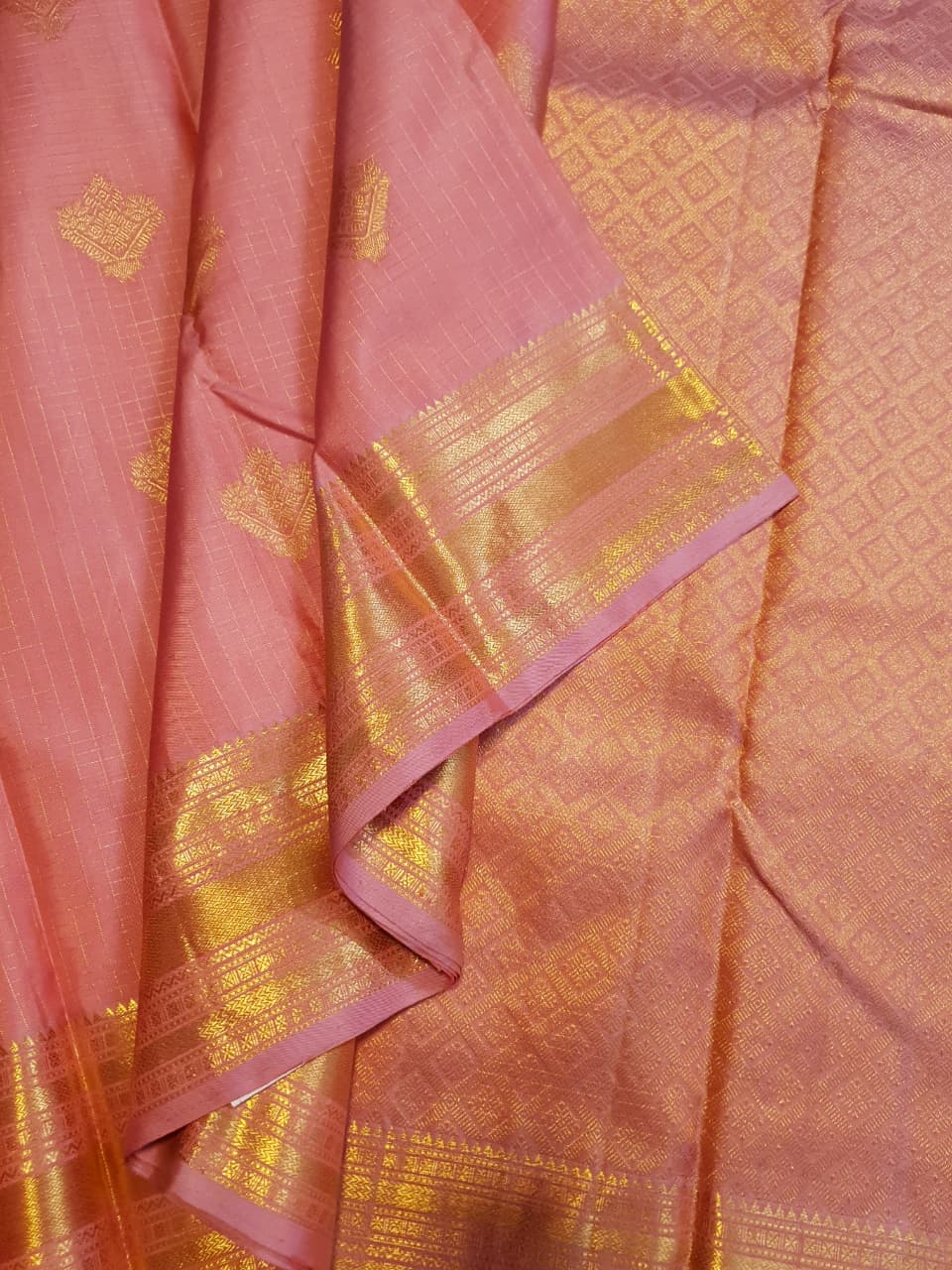 Baby Pink Kanchipuram Handloom 2G Gold Pattu Silk Saree