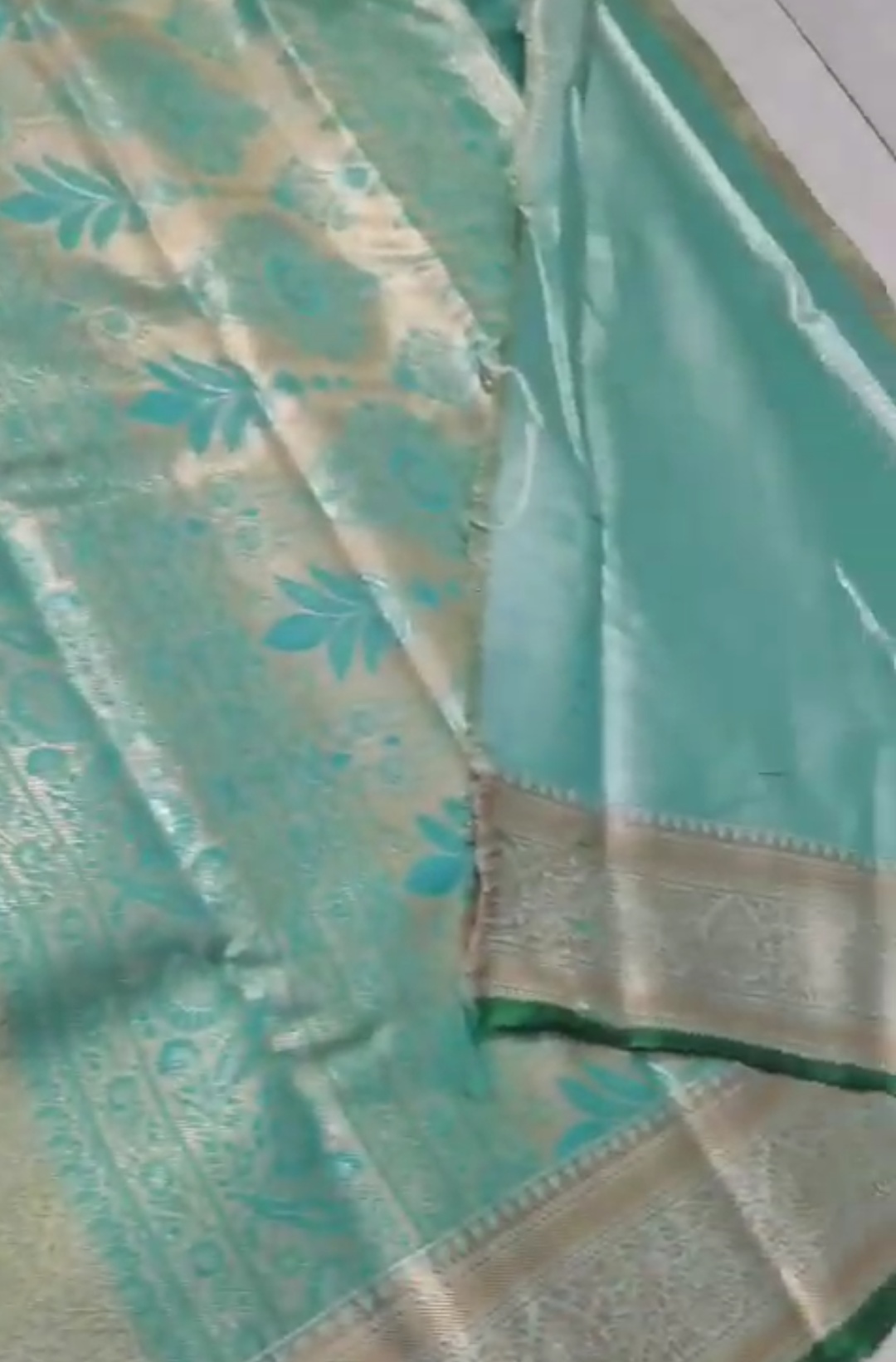 Pastel Green Kanchipuram Tissue Silk Meenakari Saree