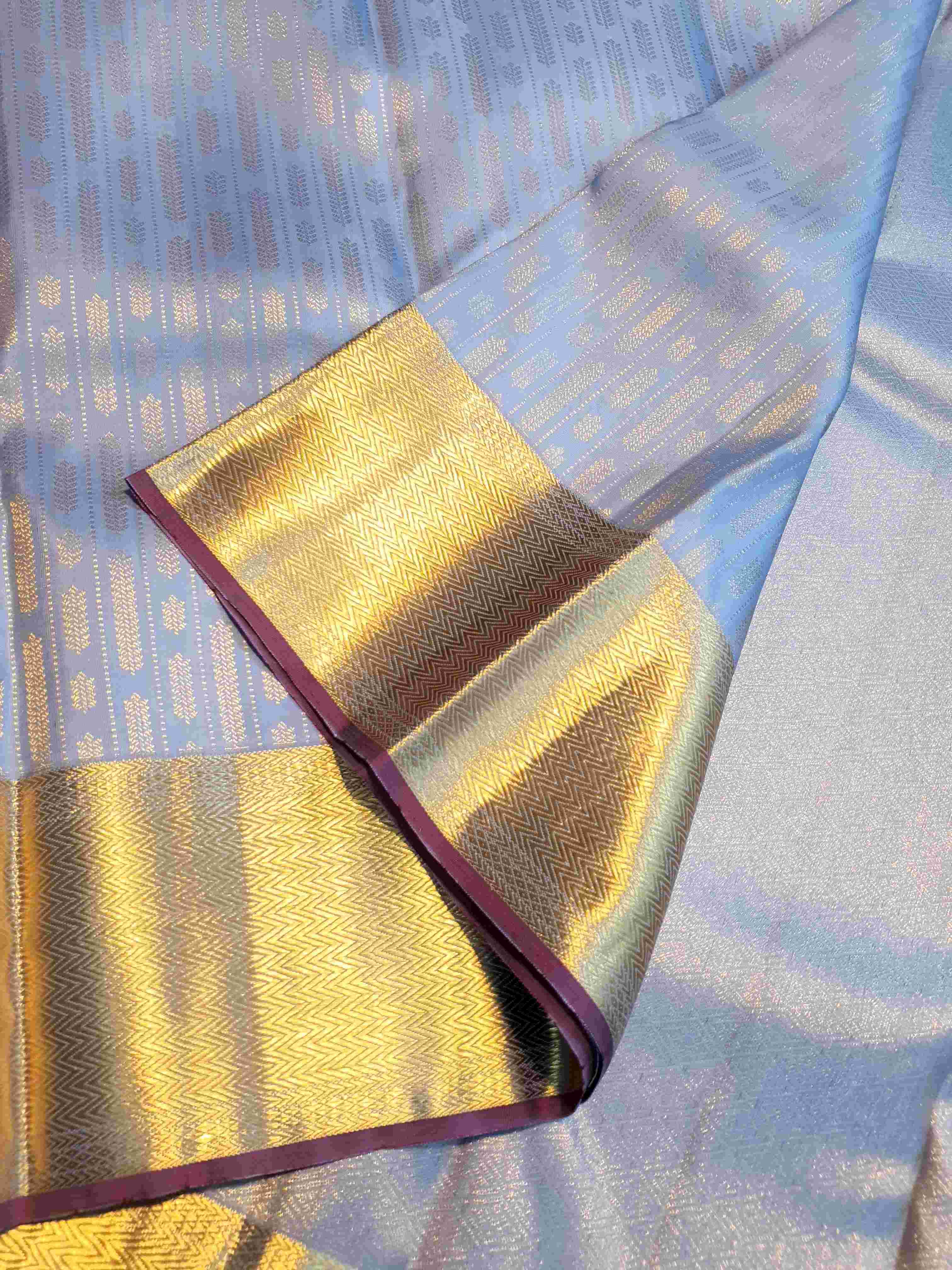 Powder Blue Kanchipuram Handloom 2G Gold Pattu Silk Saree