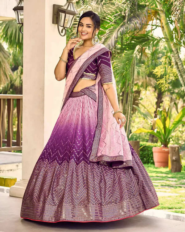 Purple & Light Peach Lehenga Choli with Thread & Sequins Work