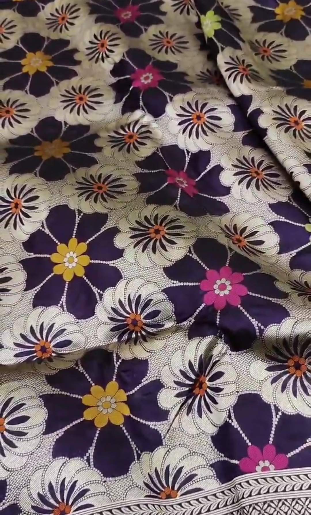 Purple Banarasi Handloom Katan Silk Meenakari Saree