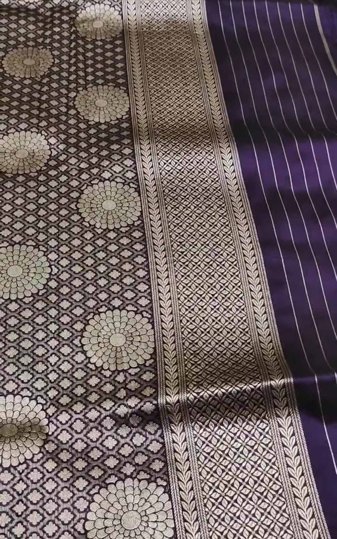 Dark Purple Banarasi Handloom Katan Silk Brocade Saree