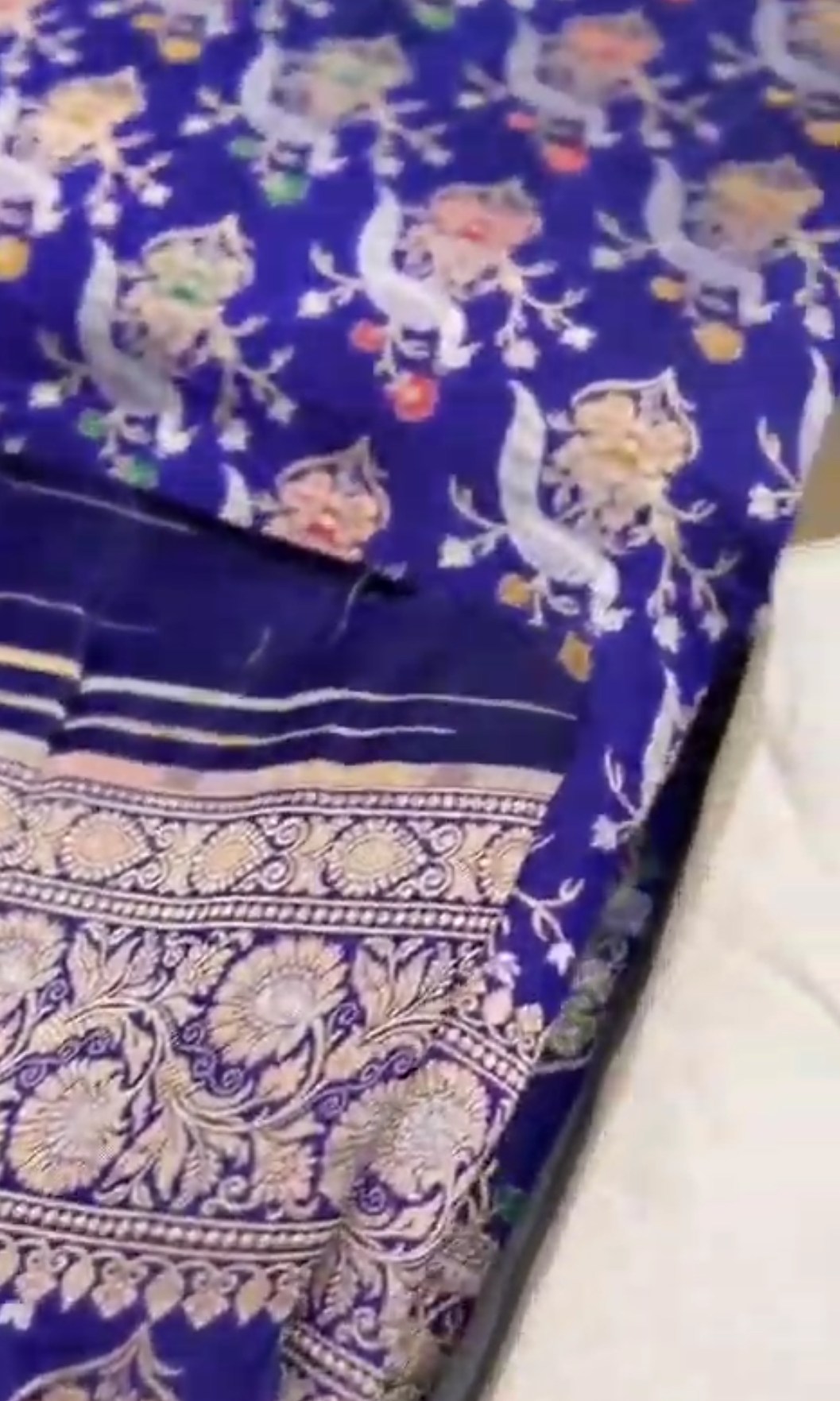 Royal Blue Banarasi Handloom Katan Silk Meenakari Saree