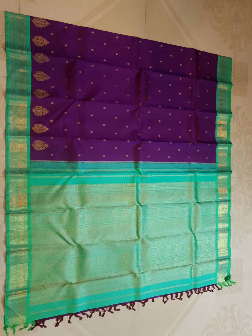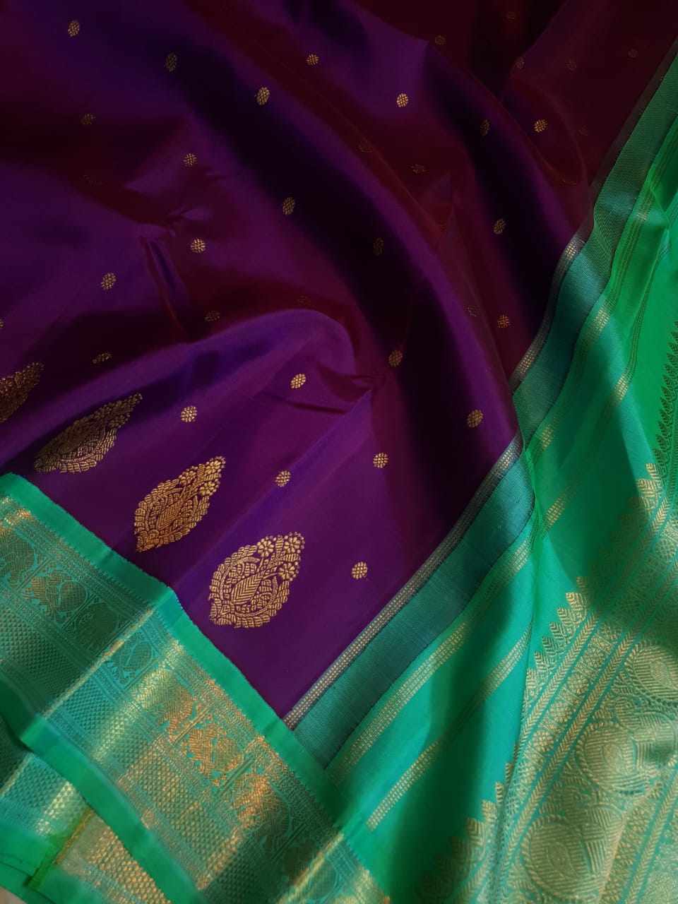 Dual Tone Purple Kanchipuram Handloom 4G Pure Gold Pattu Silk Saree