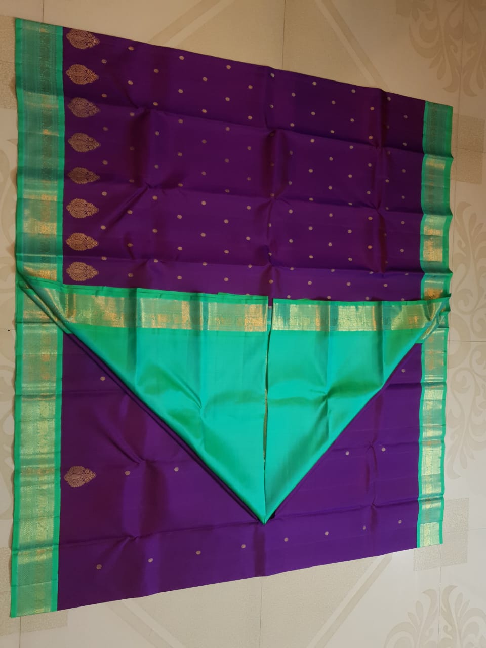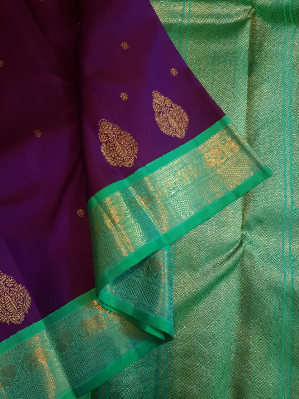 Sea Green Kanchipuram Handloom 4G Pure Gold Pattu Silk Saree