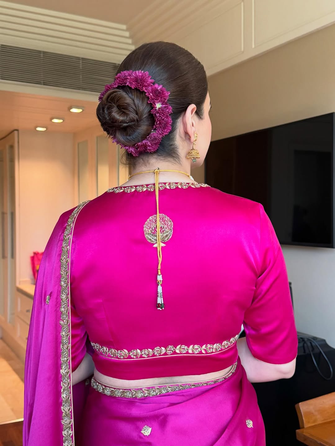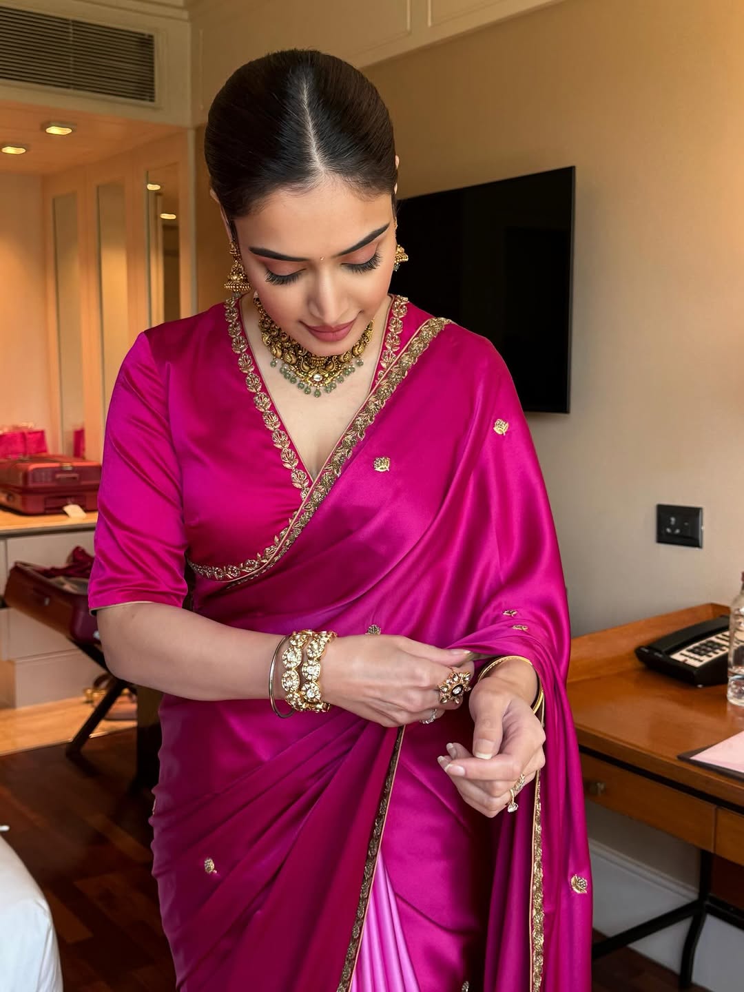Rani Pink Shaded Hand Embroidered Satin Silk Saree