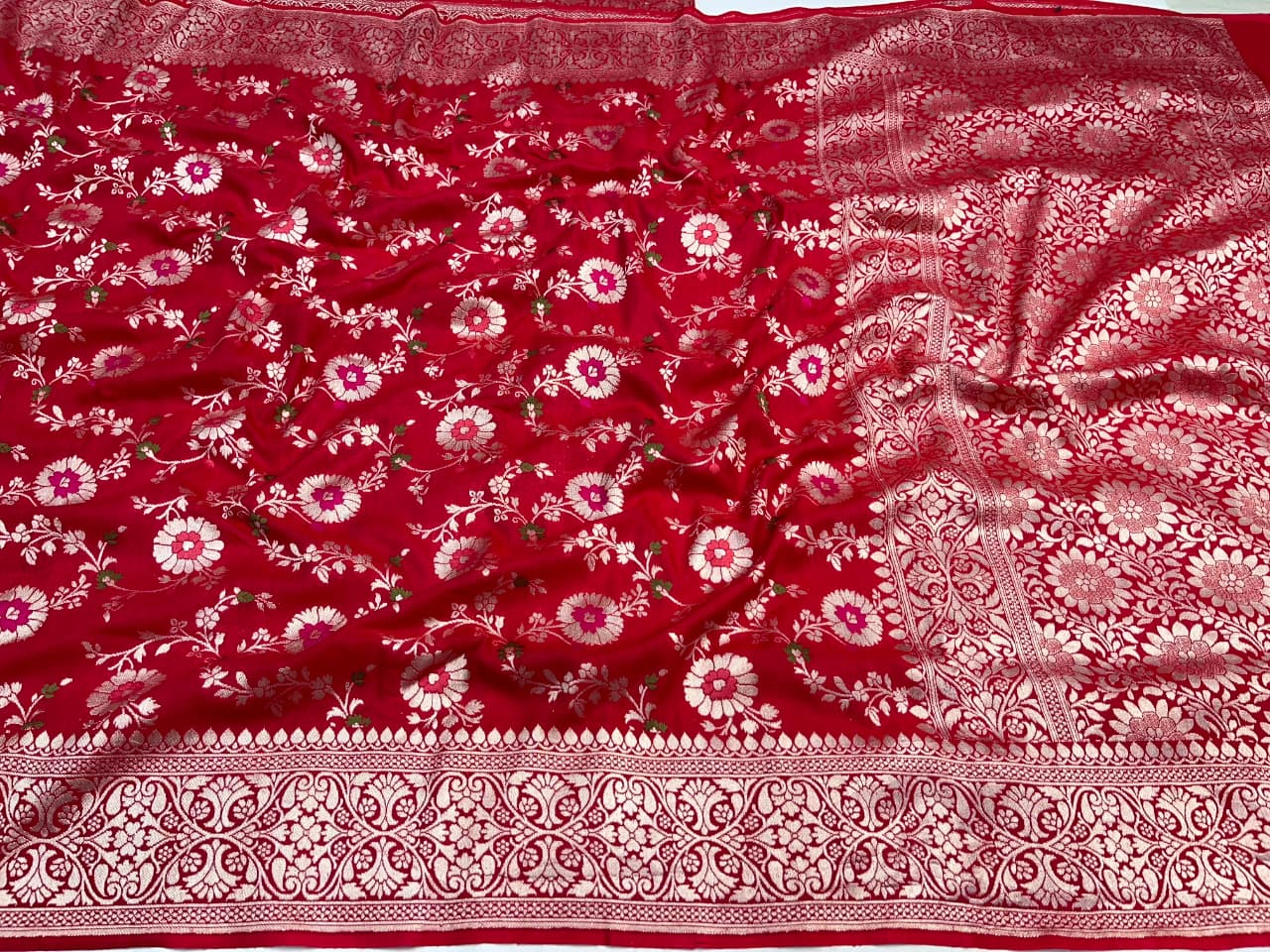 Red Banarasi Handloom Katan Silk Meenakari Saree