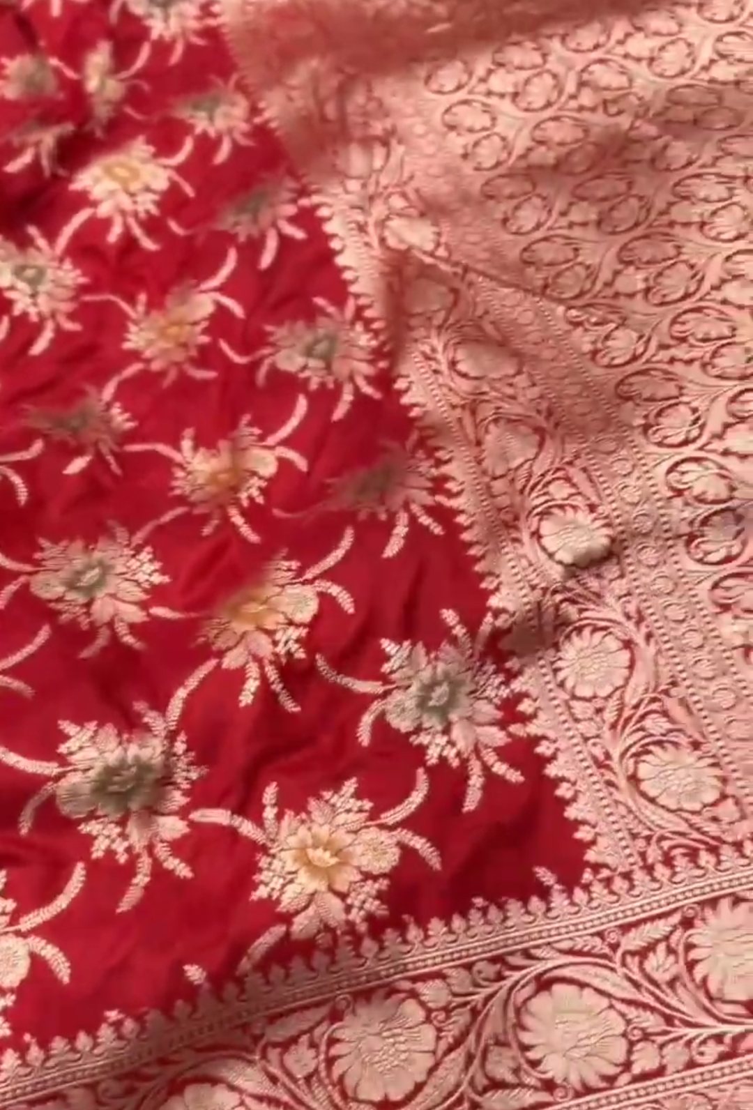 Red Banarasi Handloom Katan Silk Meenakari Saree