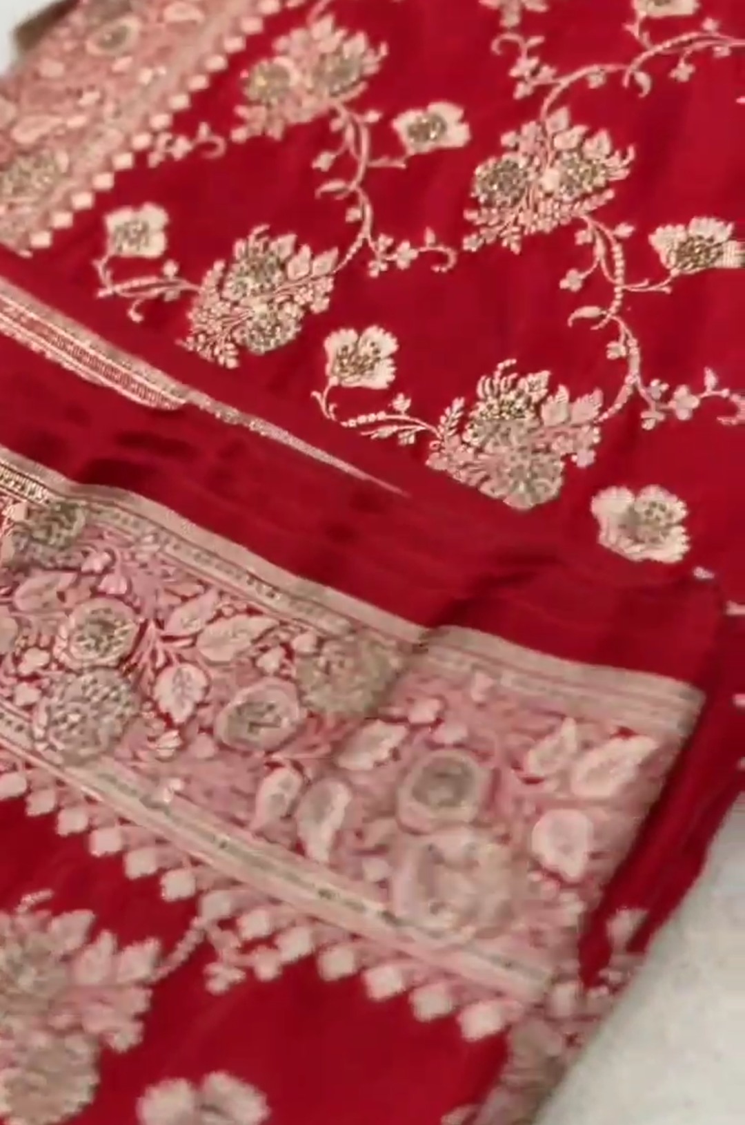 Red Banarasi Satin Katan Silk Saree