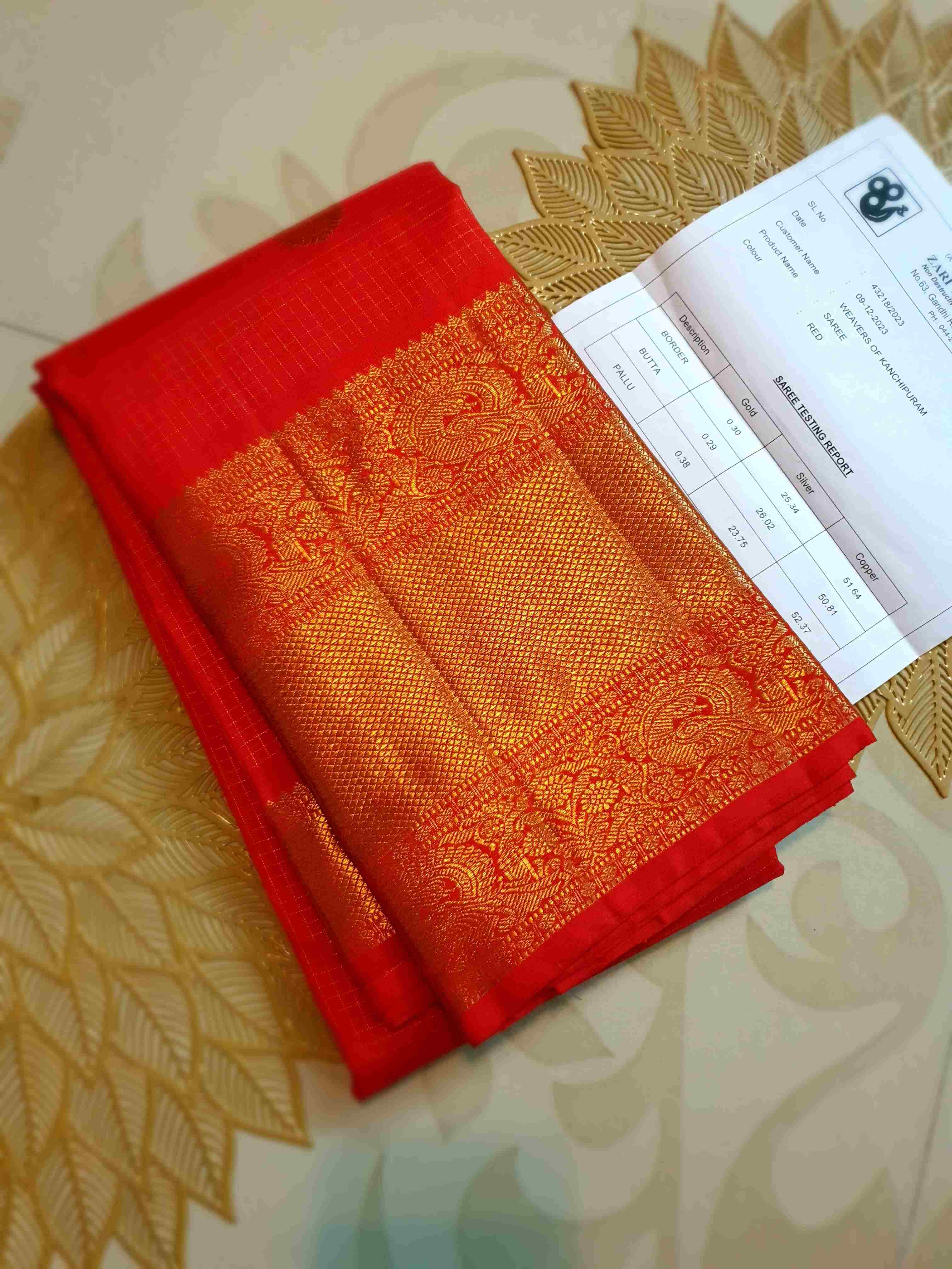 Red Kanchipuram Handloom 4G Pure Gold Pattu Silk Saree