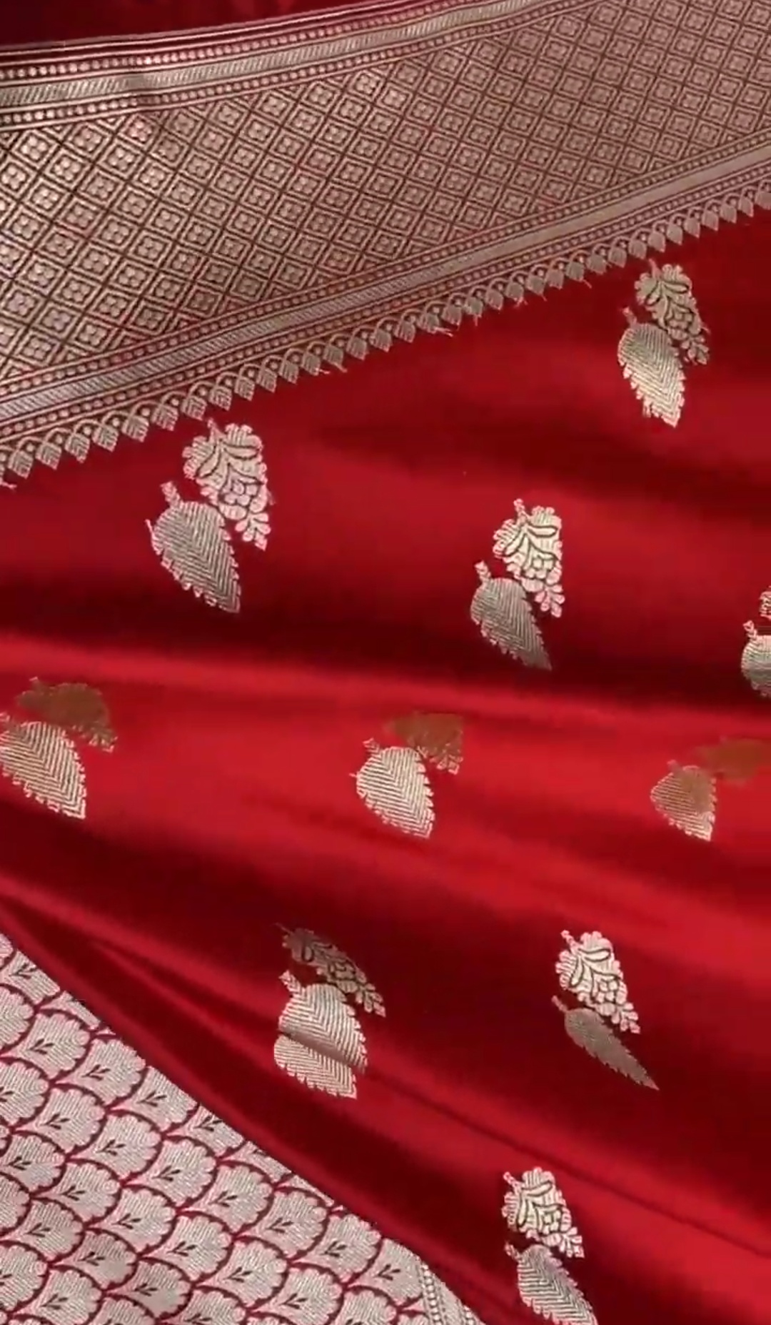 Red Banarasi Satin Katan Silk Saree