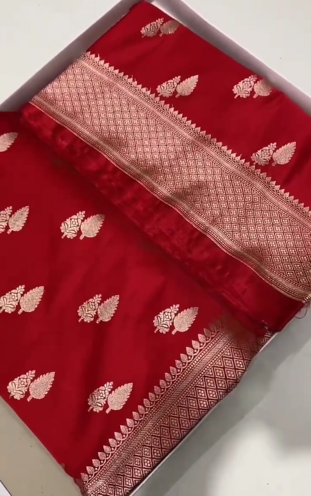 Chilly Red Banarasi Mashru Soft Silk Butta Saree
