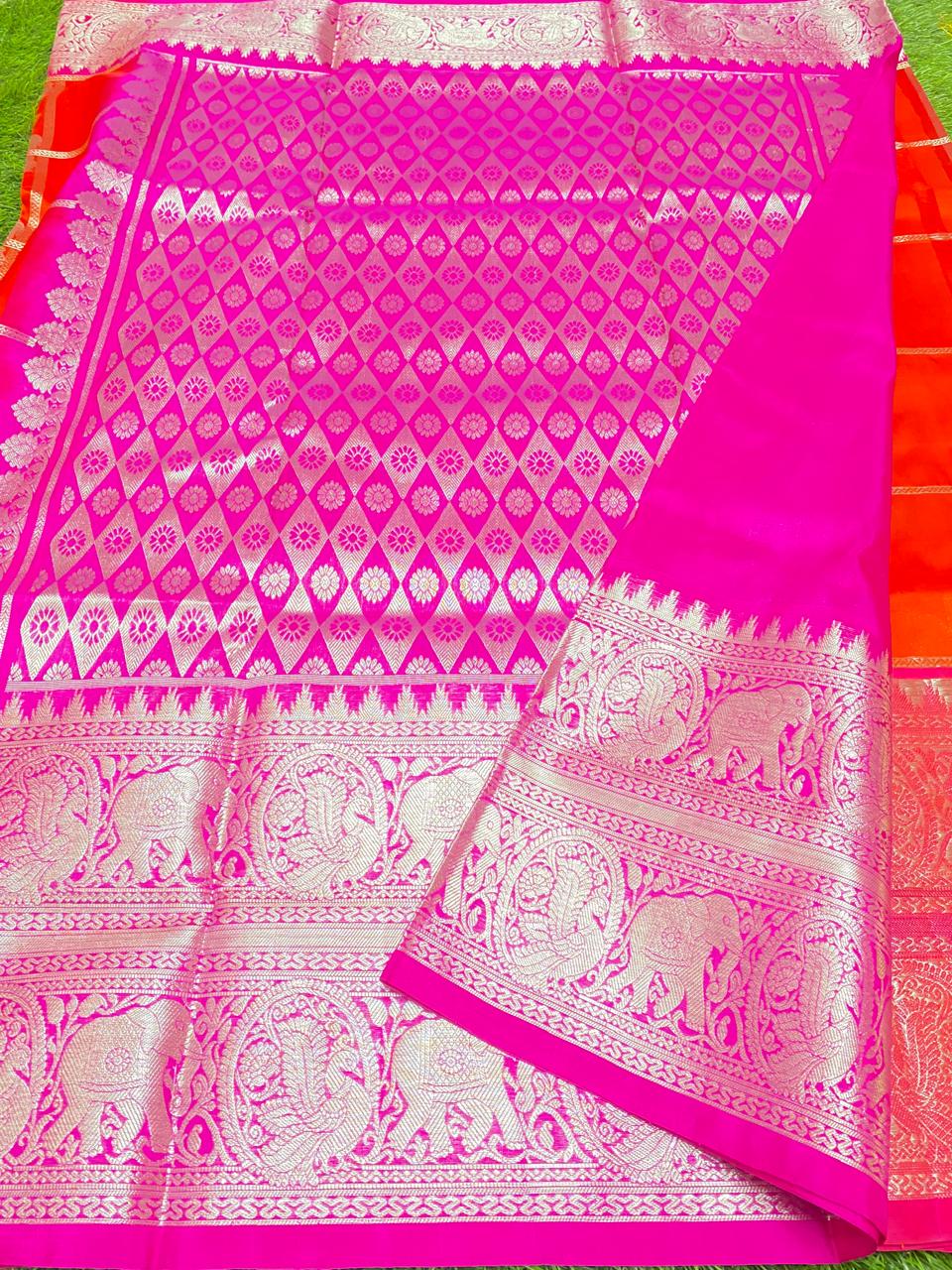 Dual Tone Pink Venkatagiri Handloom Pattu Silk Meenakari Saree