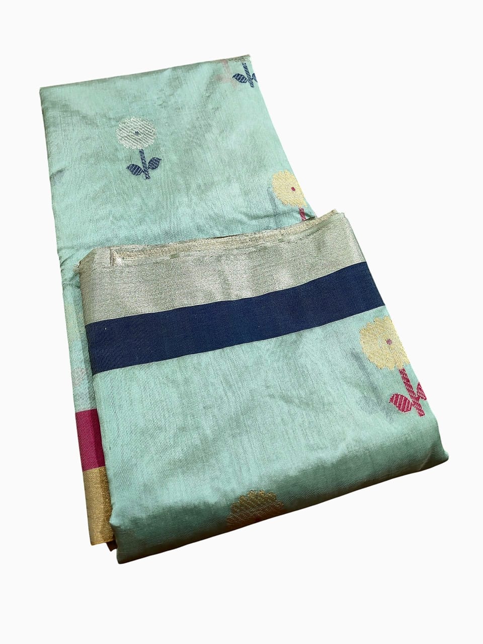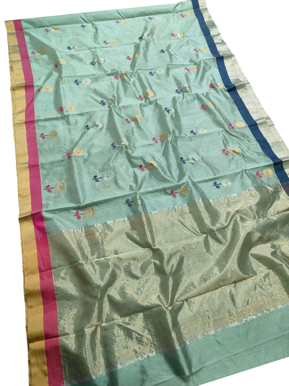 Sea Green Chanderi Handloom Pattu Silk Meenakari Saree