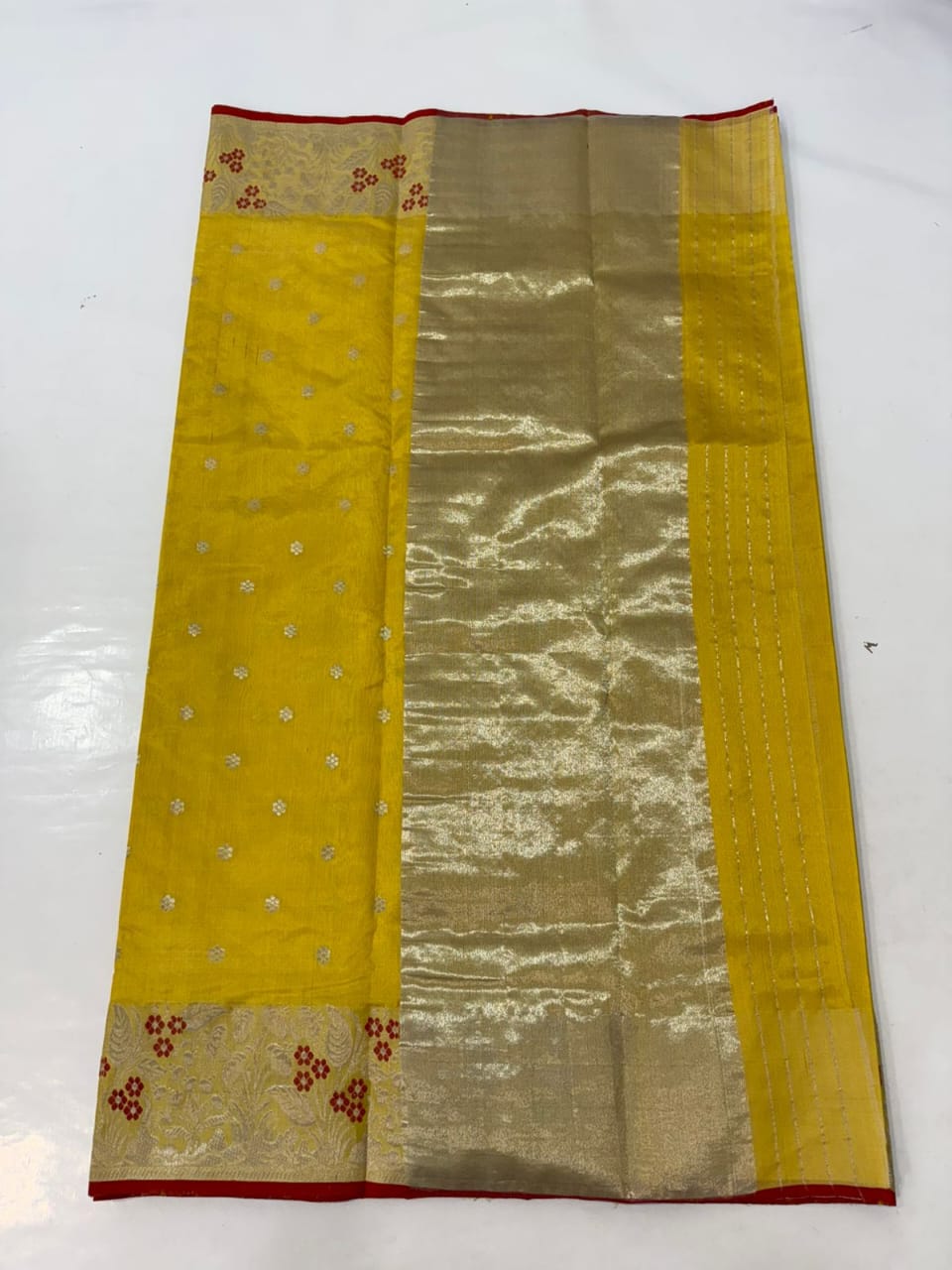 Turmeric Chanderi Handloom Pattu Silk Handwork Saree