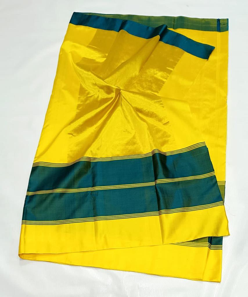 Yellow Chanderi Handloom Pattu Silk Mashru Borders Saree