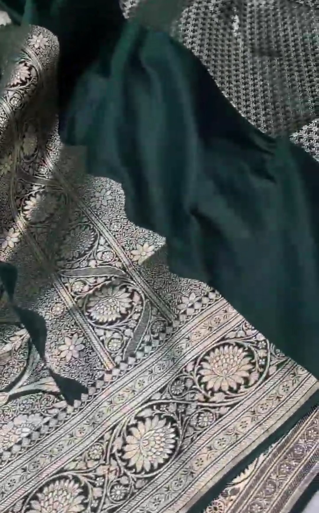 Green Banarasi Satin Katan Silk Swarovski Jangla Saree
