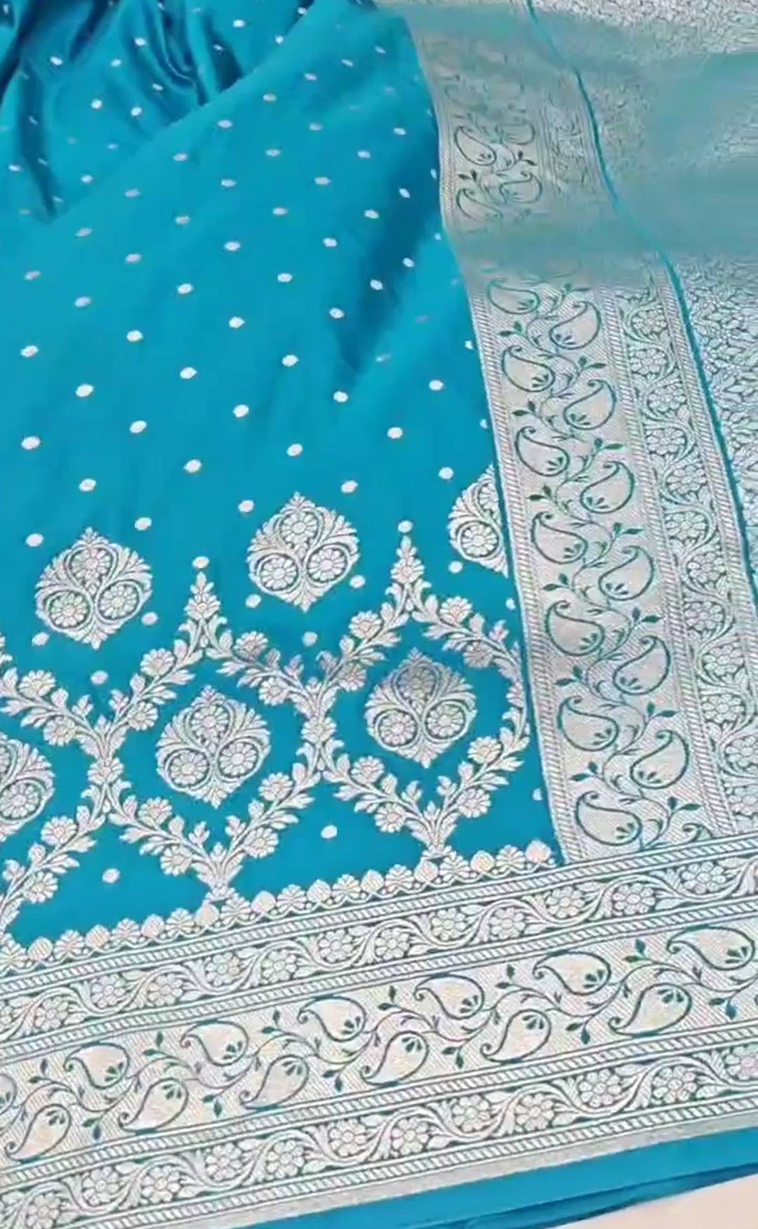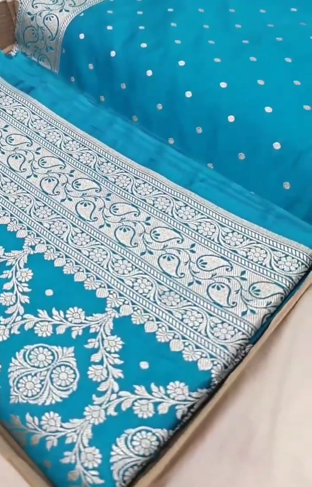 Deep Sky Blue Banarasi Mashru Soft Silk Saree
