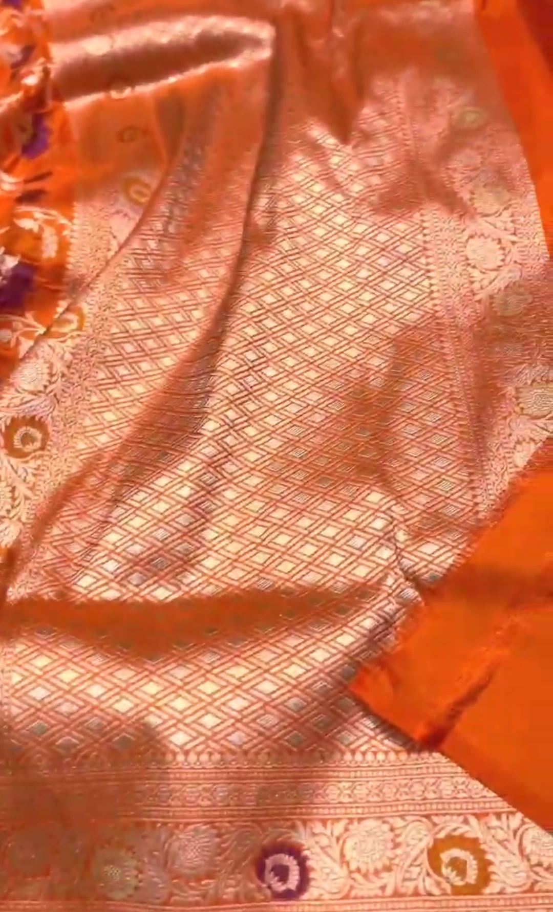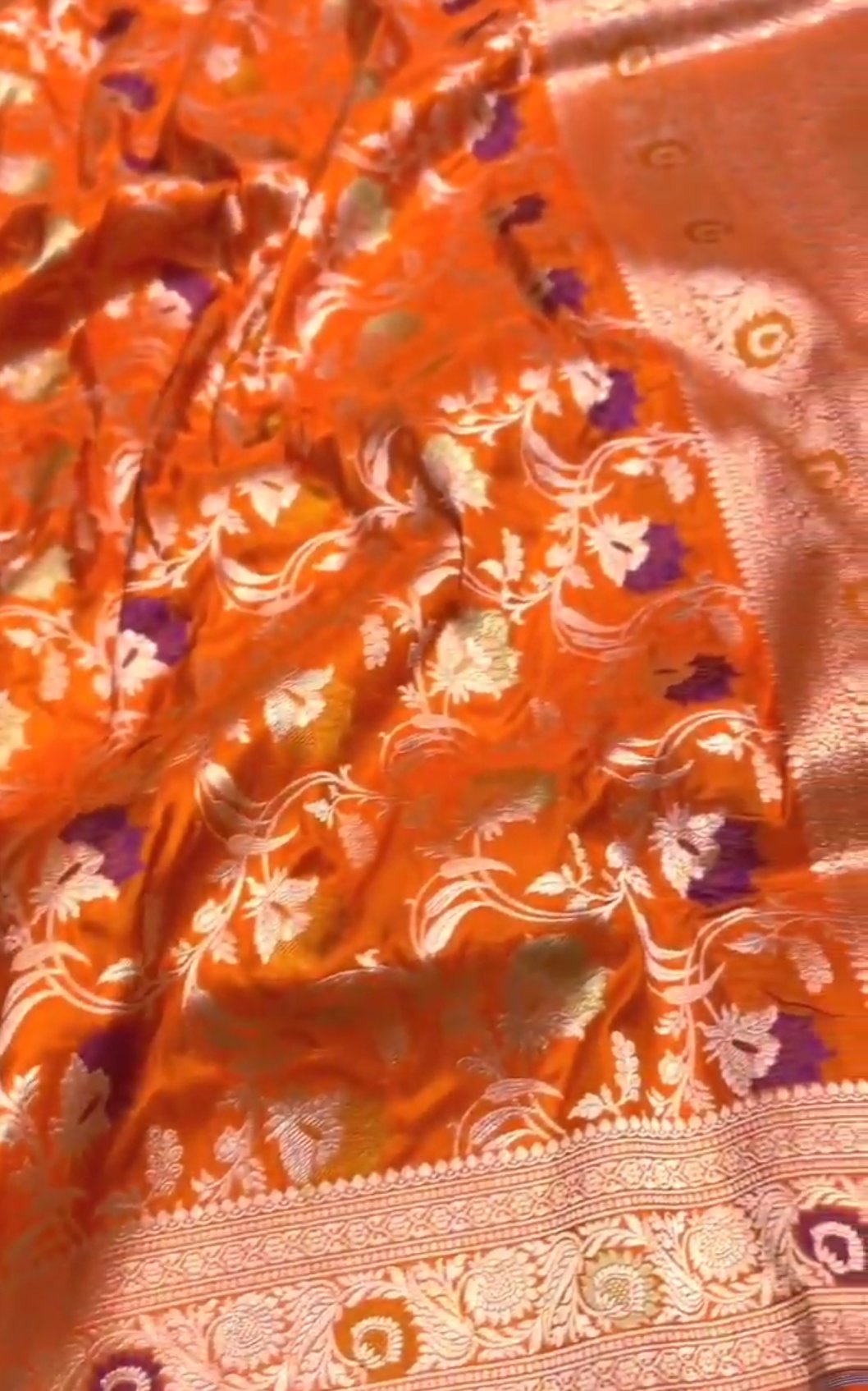 Orange Banarasi Handloom Katan Silk Meenakari Saree