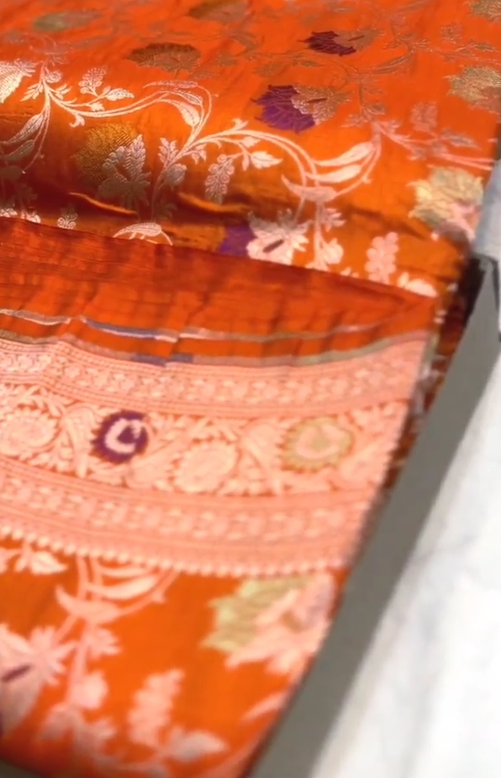 Orange Banarasi Handloom Katan Silk Tilfi Meenakari Saree
