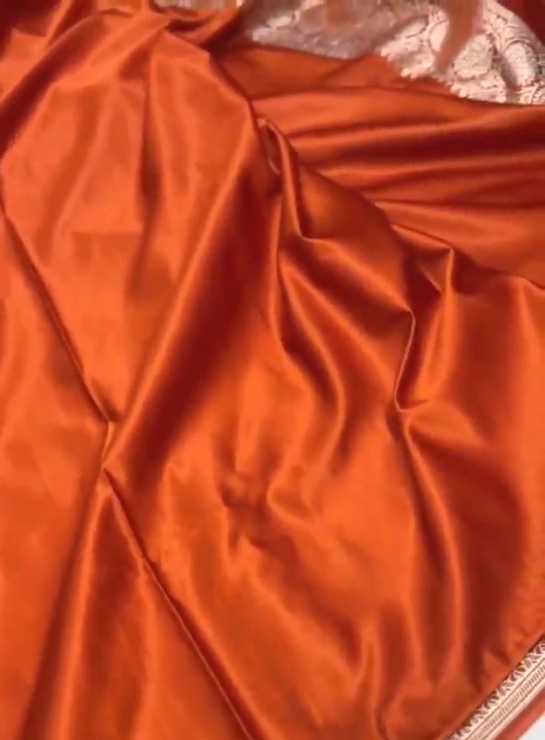 Orange Banarasi Handloom Rangkaat Mashru Silk Saree