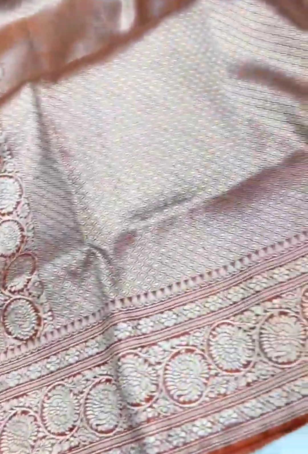 Peach Banarasi Handloom Rangkaat Mashru Silk Saree