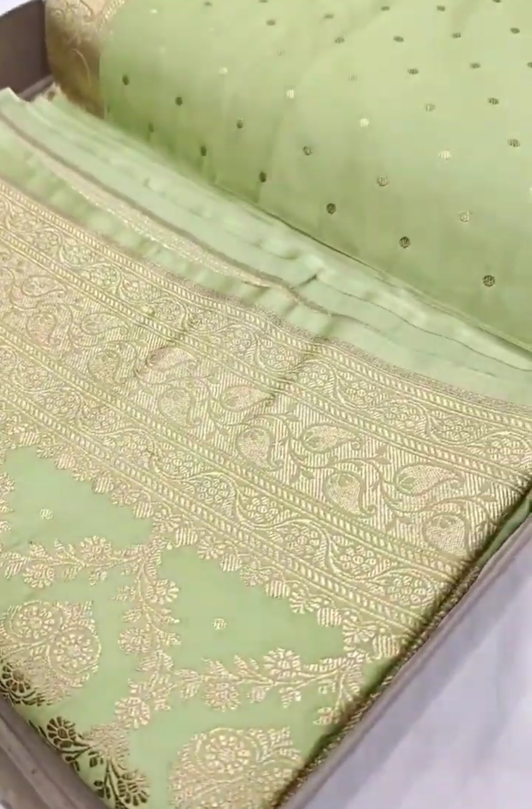 Pastel Green Banarasi Mashru Soft Silk Saree
