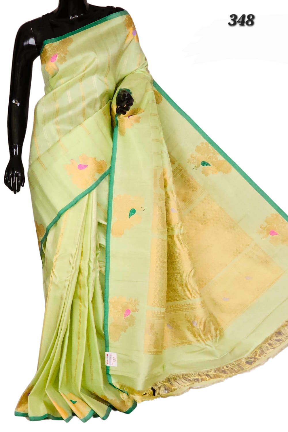 Pastel Green Gadwal Handloom Pattu Silk Turning Borders Saree