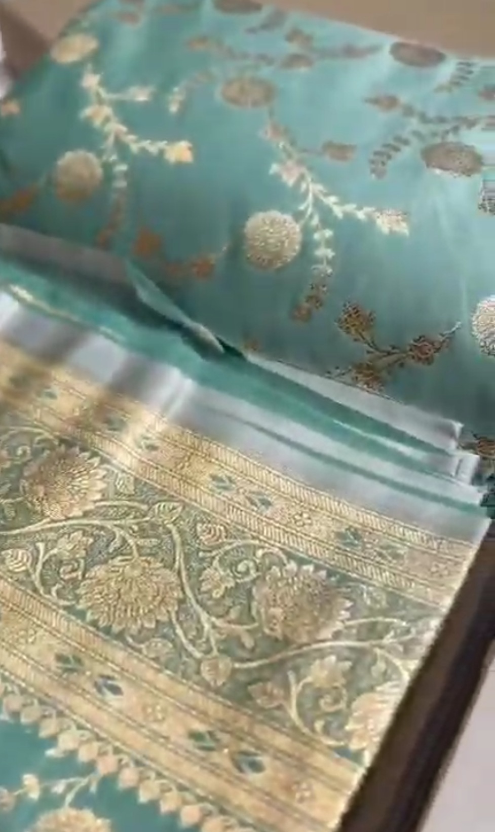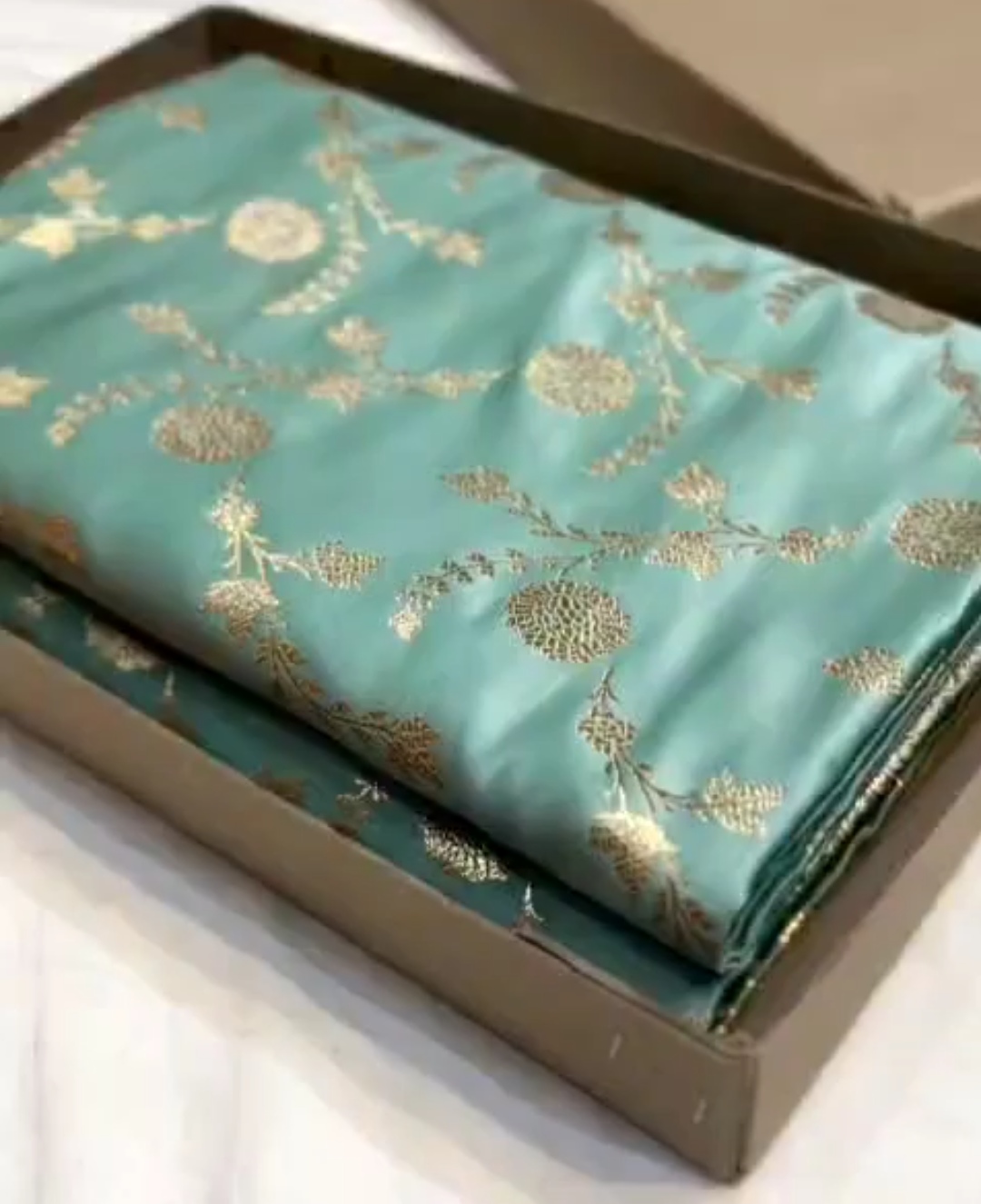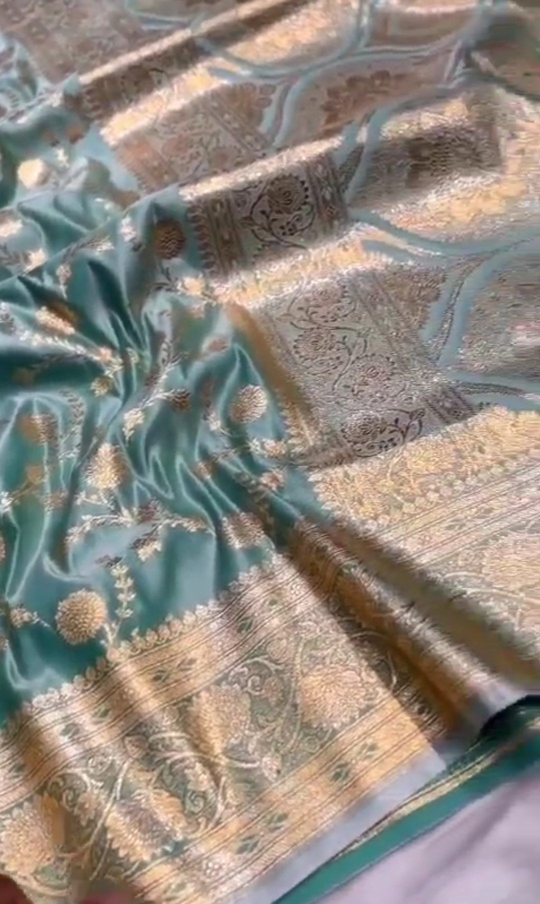 Pastel Turquoise Banarasi Satin Katan Silk Saree