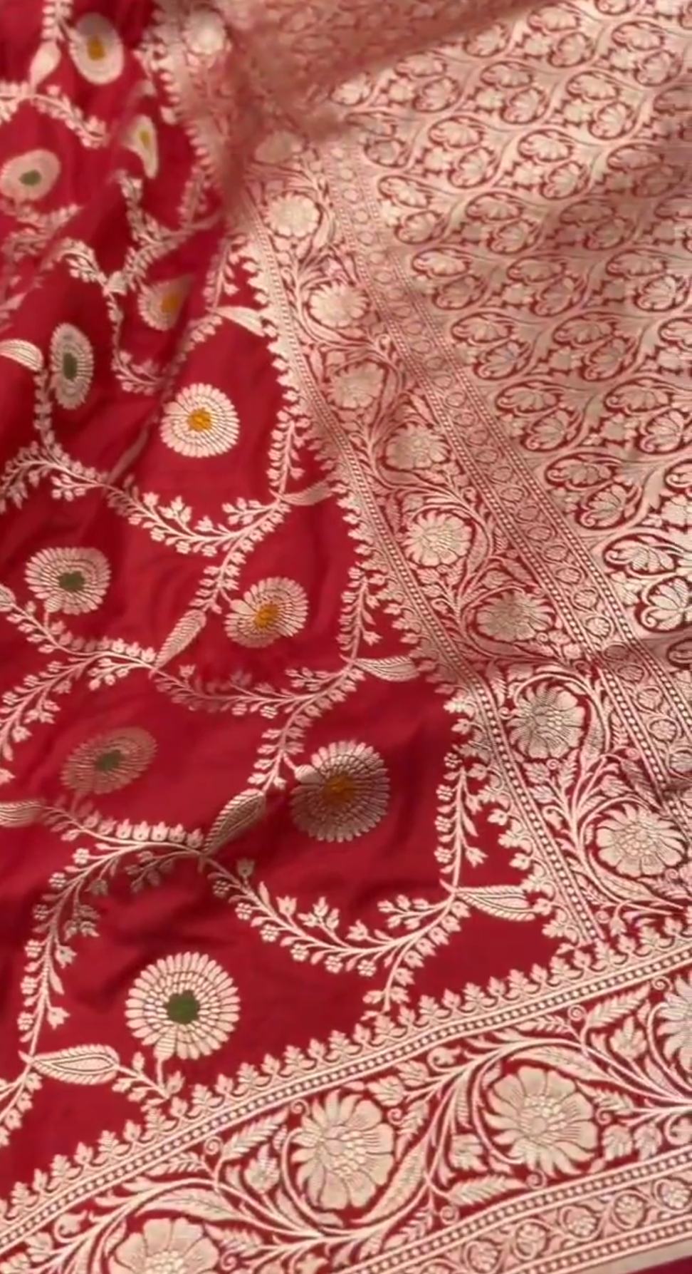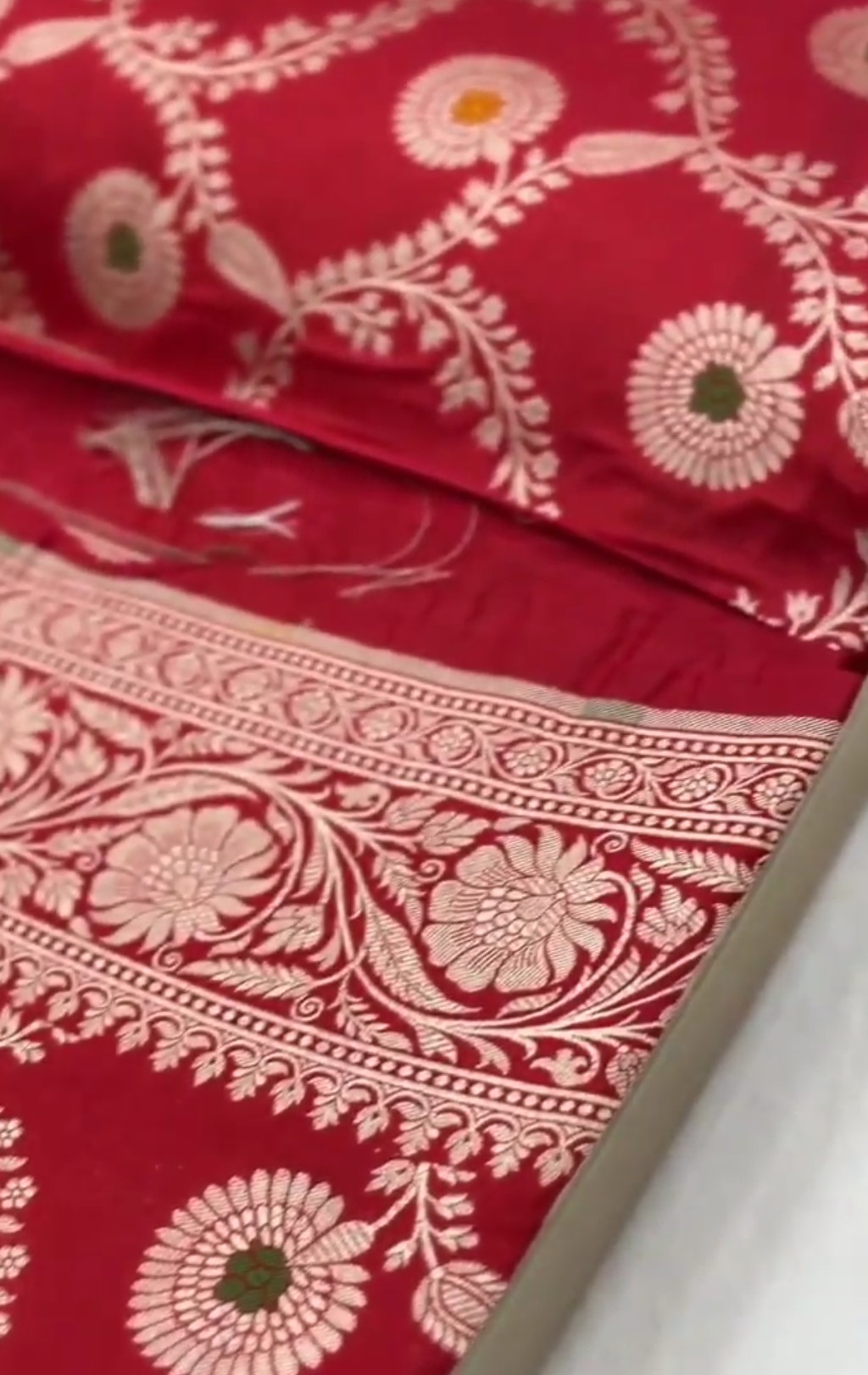 Red Banarasi Handloom Katan Silk Meenakari Saree