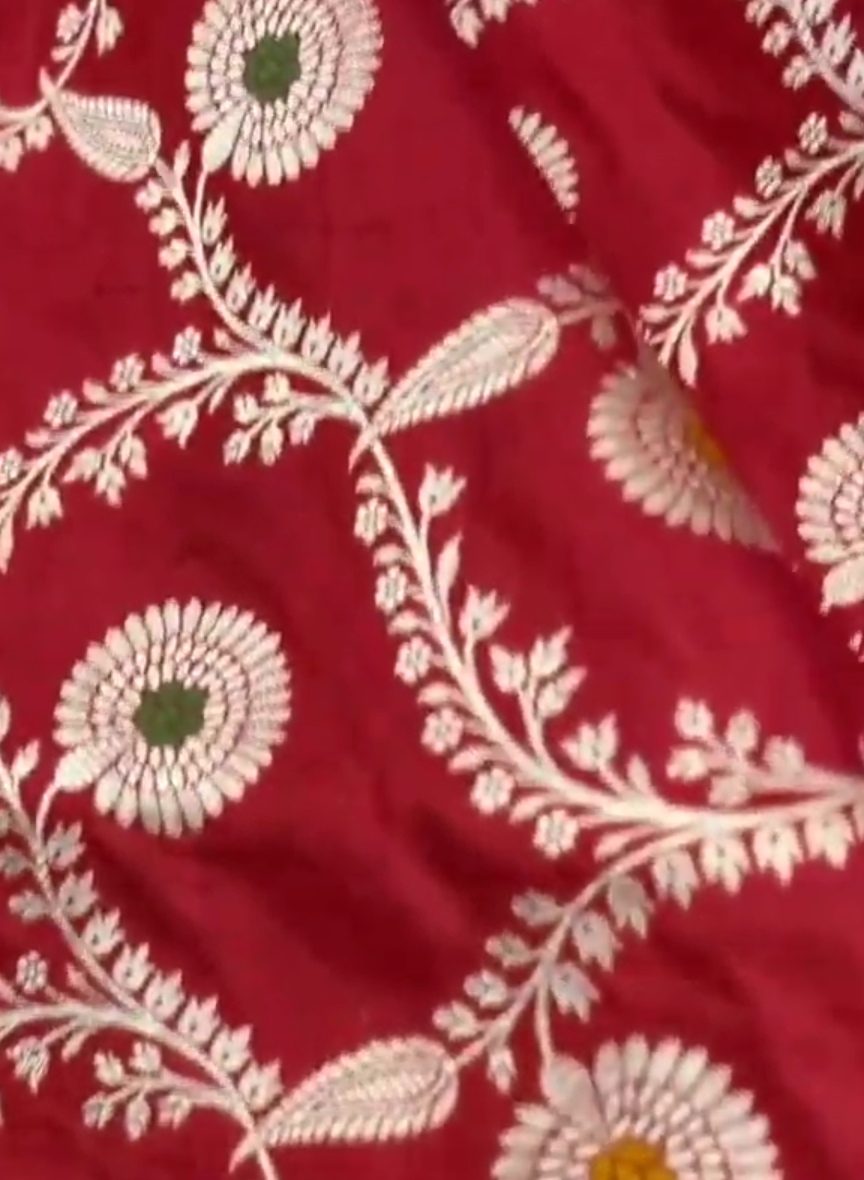 Red Banarasi Handloom Katan Silk Chand Tara Bridal Saree