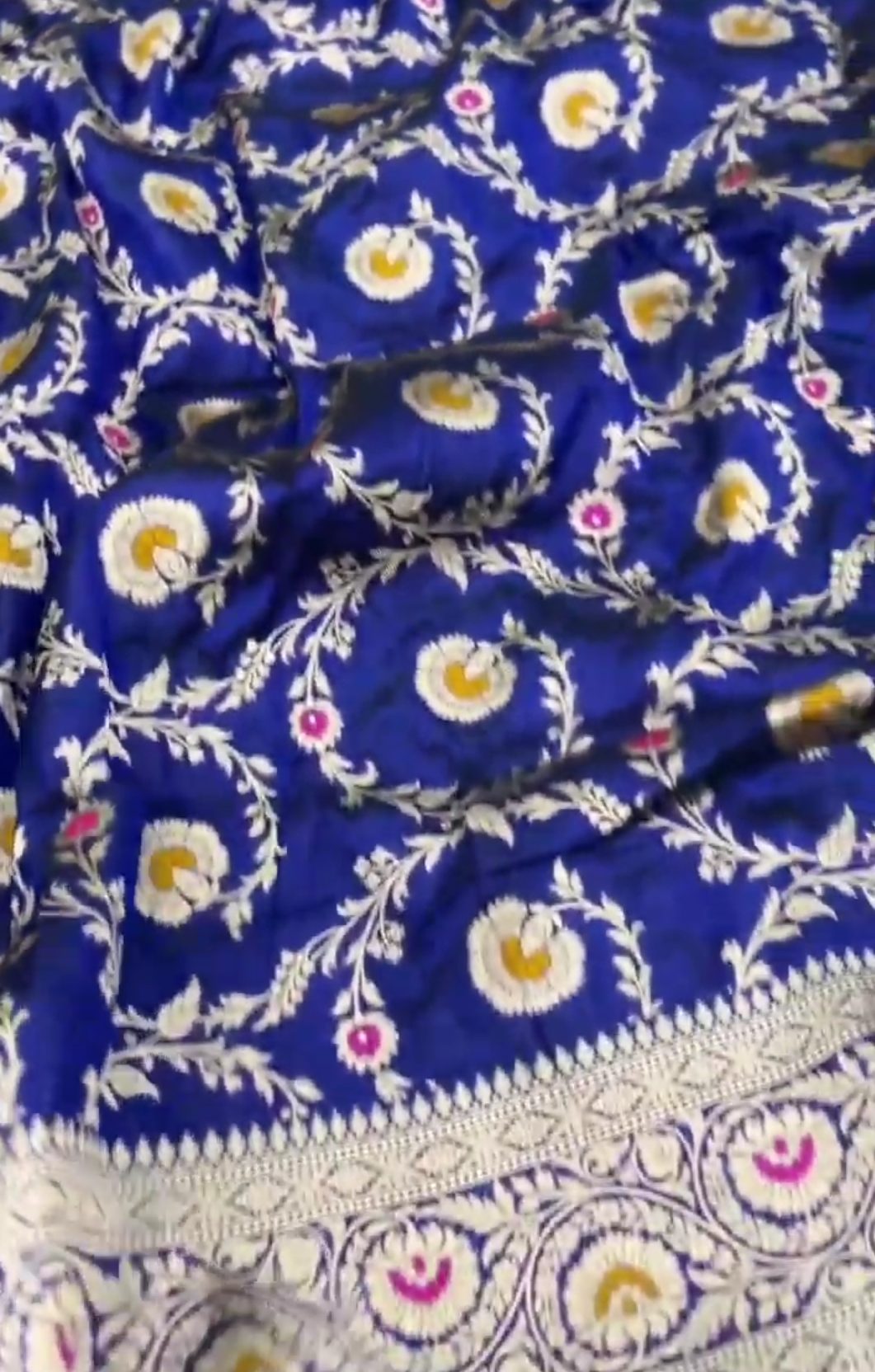 Dark Blue Banarasi Handloom Katan Silk Meenakari Saree