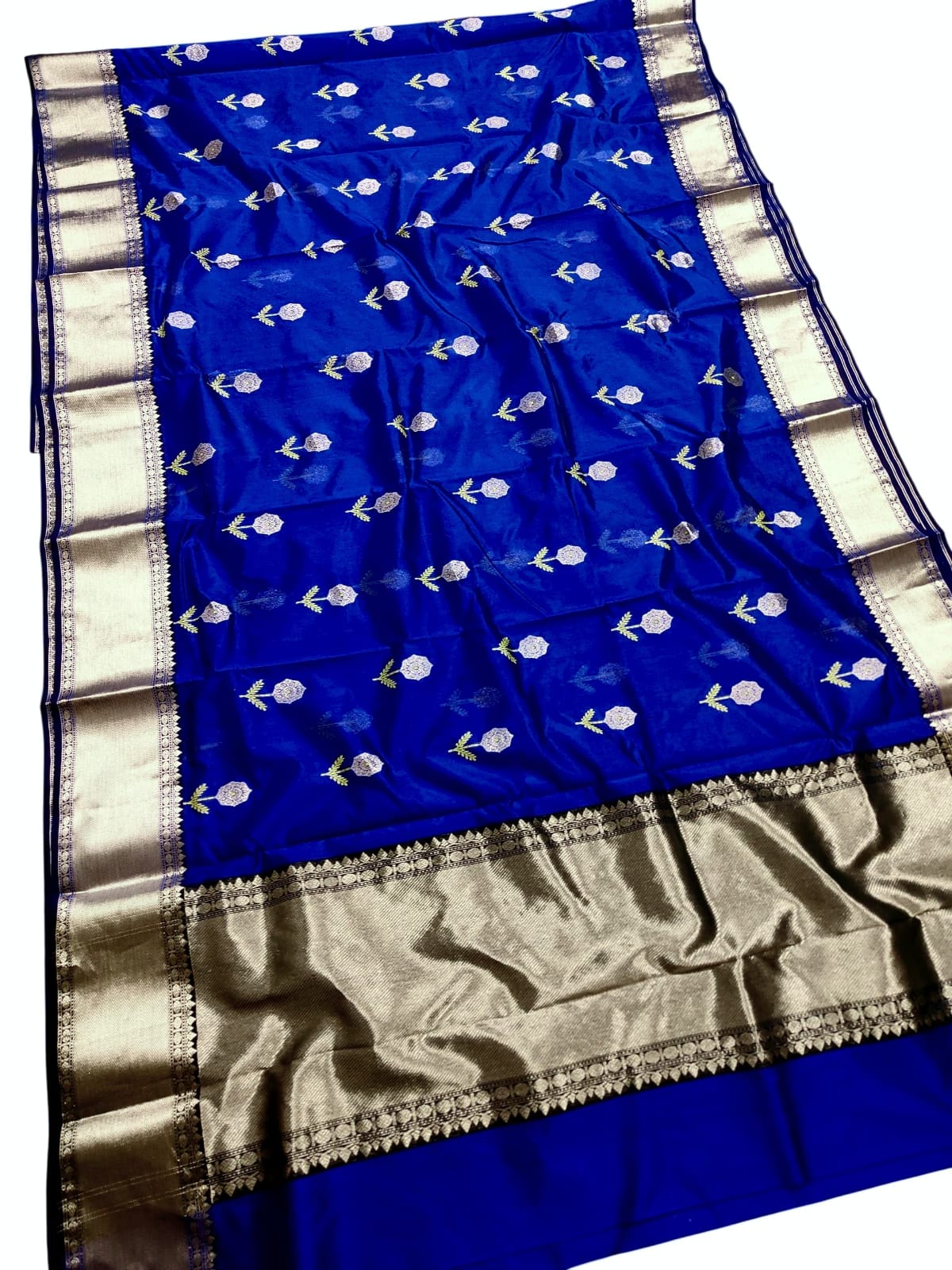 Dark Blue Chanderi Handloom Pattu Silk Sona Rupa Saree