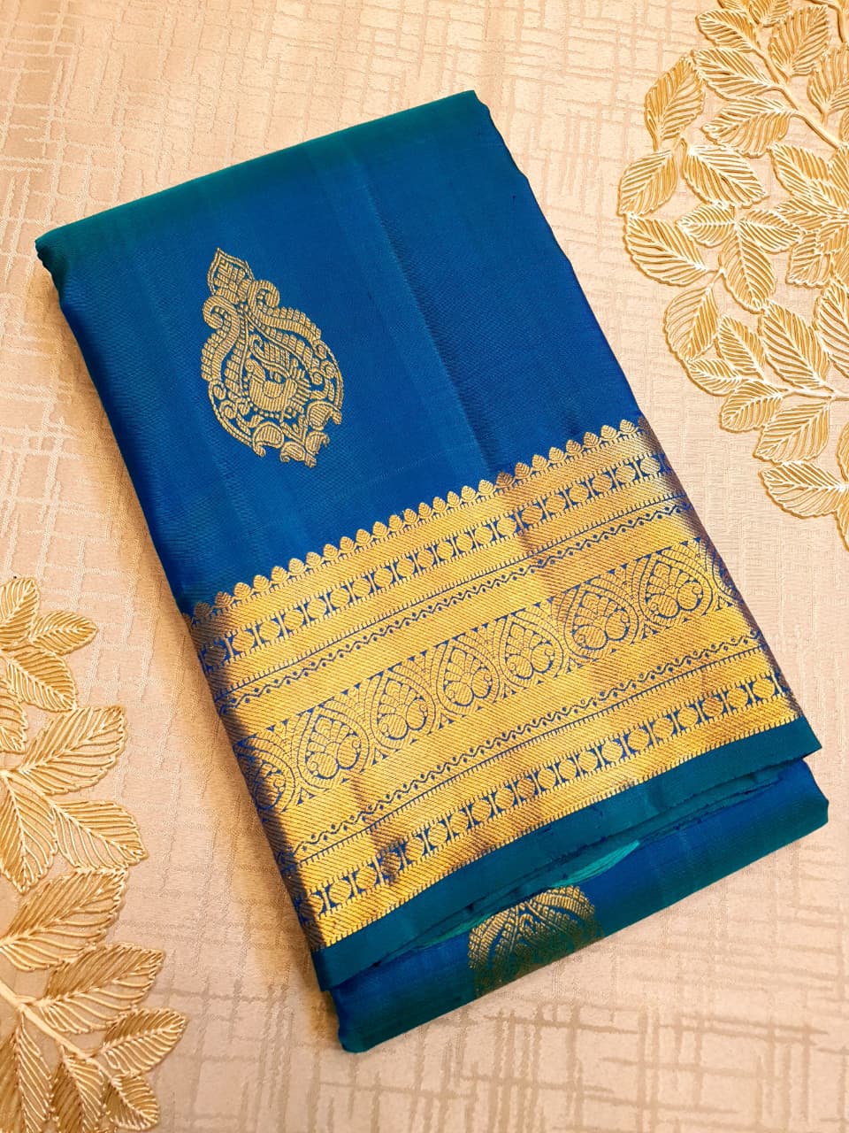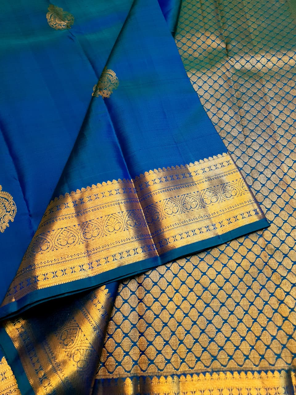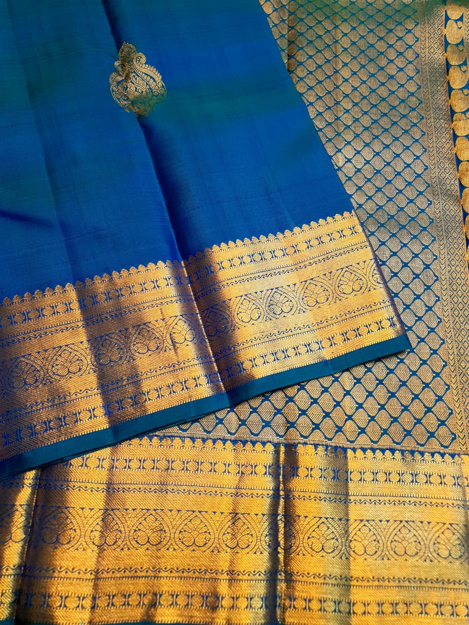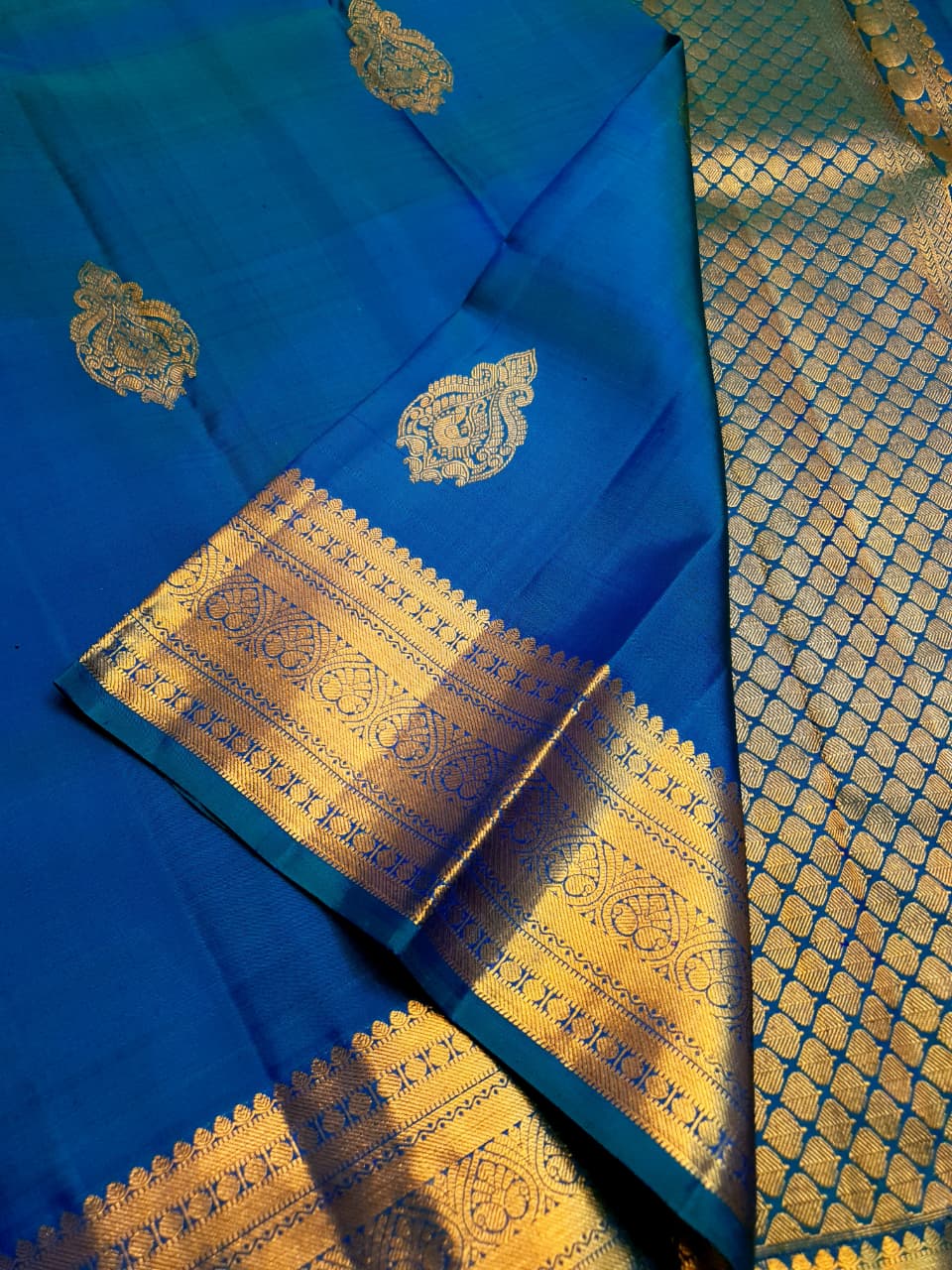 Azure Blue Kanchipuram Handloom 1G Gold Pattu Silk Saree